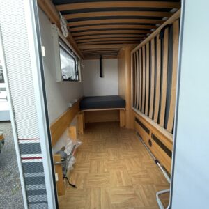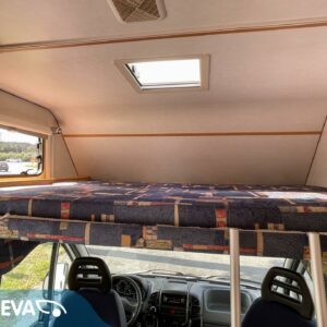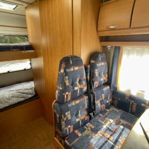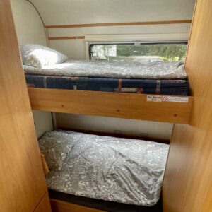 Auton takaosassa on poikittaiset kerrosvuoteet, joista alemman voi kääntää pystyy tavaratilan kasvattamiseksi.