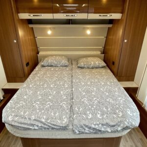 Vaunun sydämenä toimii etuosan muhkea saarekevuode, johon on helppo kulkea niin sängyn sivulta kuin päädystäkin.