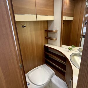 Alde, Erillisvuoteet, Erikoisvanteet, Jääkaappi, Kasetti WC, Kasettiverhot, Kattoluukku, Liesi, Lämminvesiboileri, Nestekiertolämmitys, Pakastelokero, Pesuallas, Sähköpatruuna, Tukijalat, Lattialämmitys (nestekierto), pullonvaihtaja, kaasun ulosotto, sähkön ulosotto, televisioteline, kwh-mittari, Lattiamatot asunto-osassa, Kotelomarkiisi