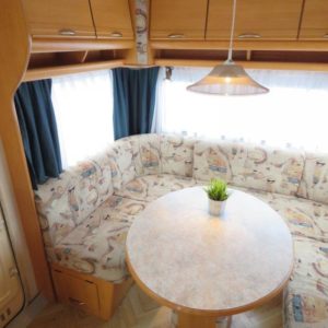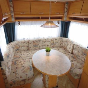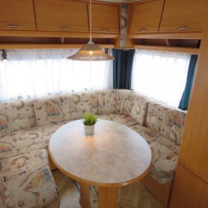 Ensimmäiseltä omistajalta ikäisekseen siisti vaunu. Takapäässä tilava U-istuinryhmä, mikä on mahdollista muuttaa parivuoteeksi. Keskellä keittiö sekä wc ja edessä parivuode poikittain. Runsaasti kaappi- ja säilytystilaa.