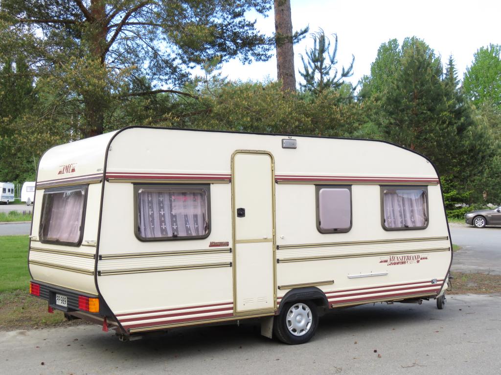 Varusteina mm: Primus- nestekeskuslämmitys sähköpatruunalla, Jääkaappi, PortaPotti- WC,..