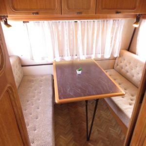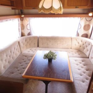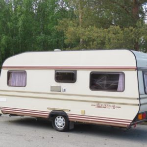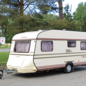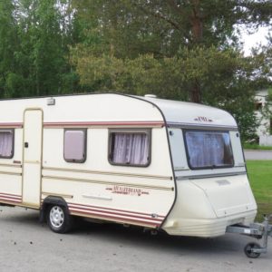 Varusteina mm: Primus- nestekeskuslämmitys sähköpatruunalla, Jääkaappi, PortaPotti- WC,..