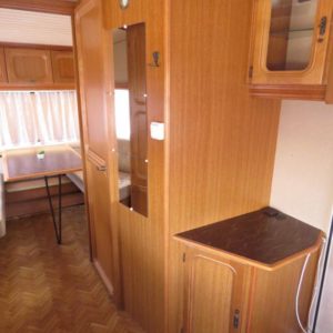 Varusteina mm: Primus- nestekeskuslämmitys sähköpatruunalla, Jääkaappi, PortaPotti- WC,..