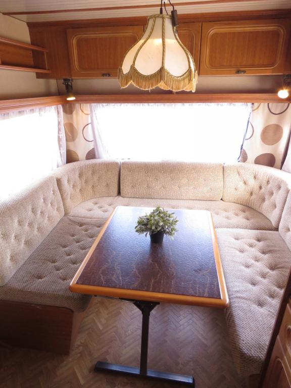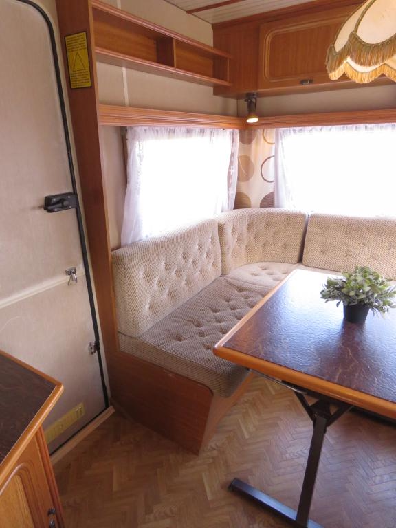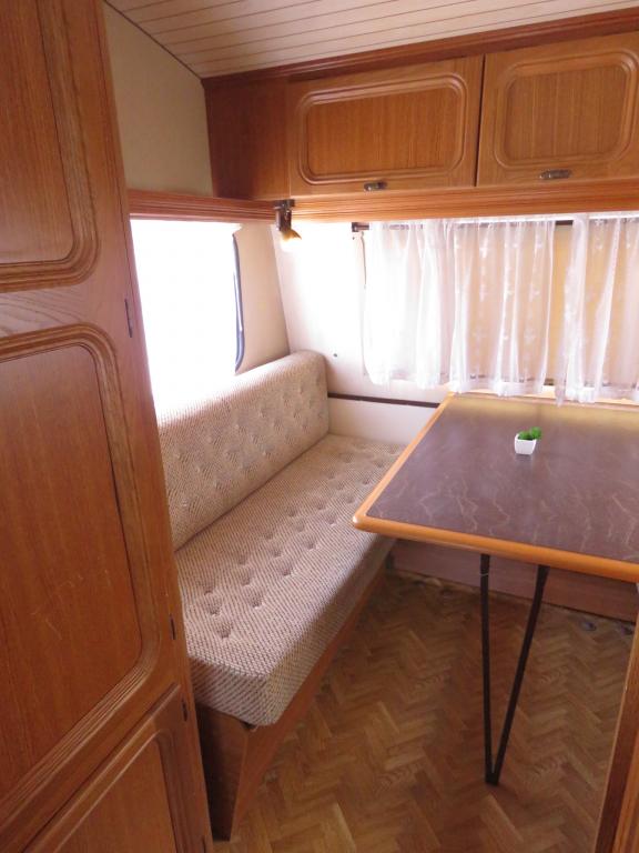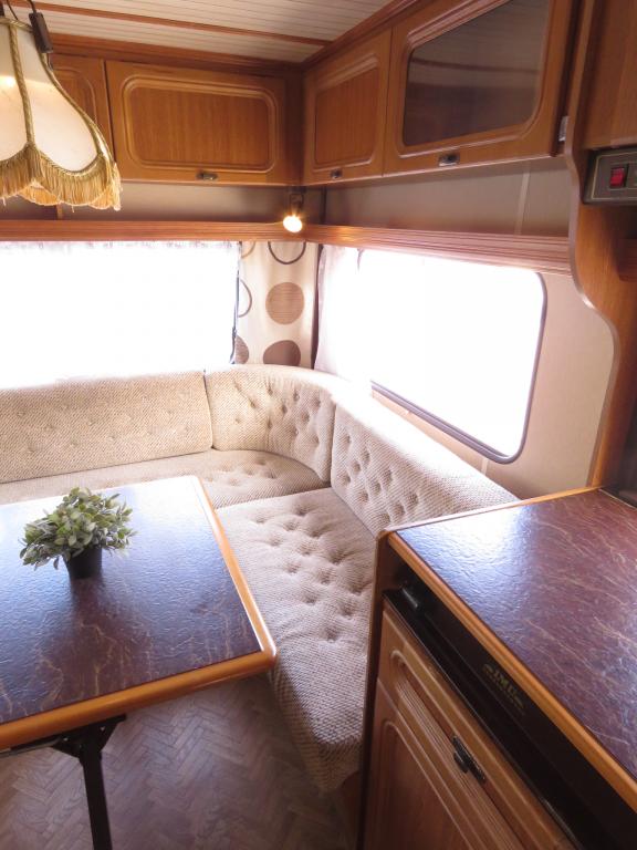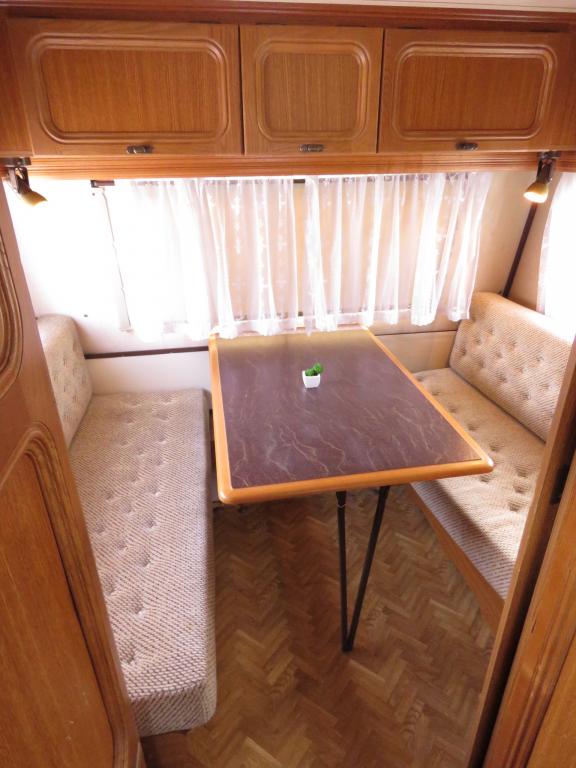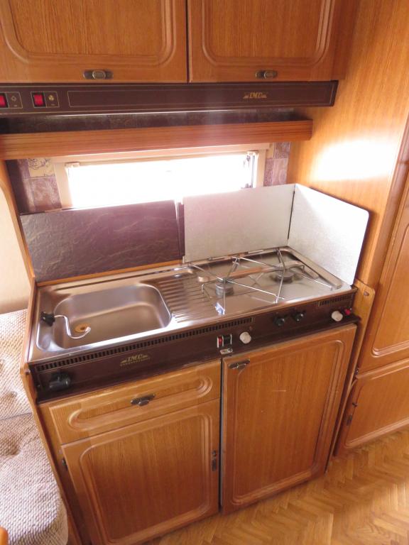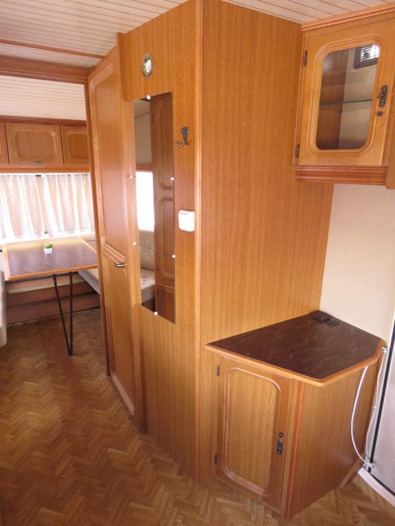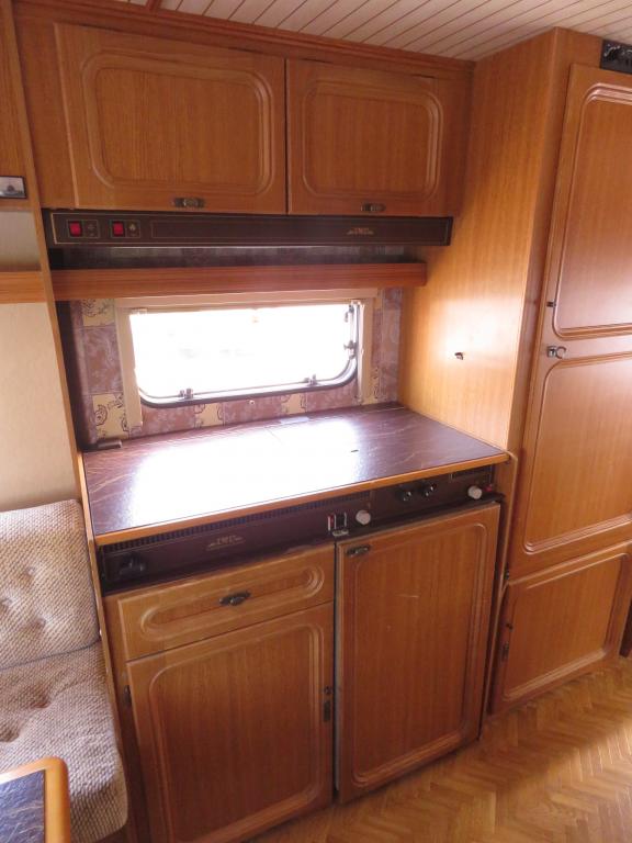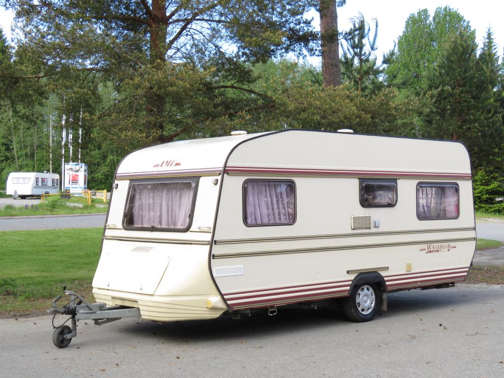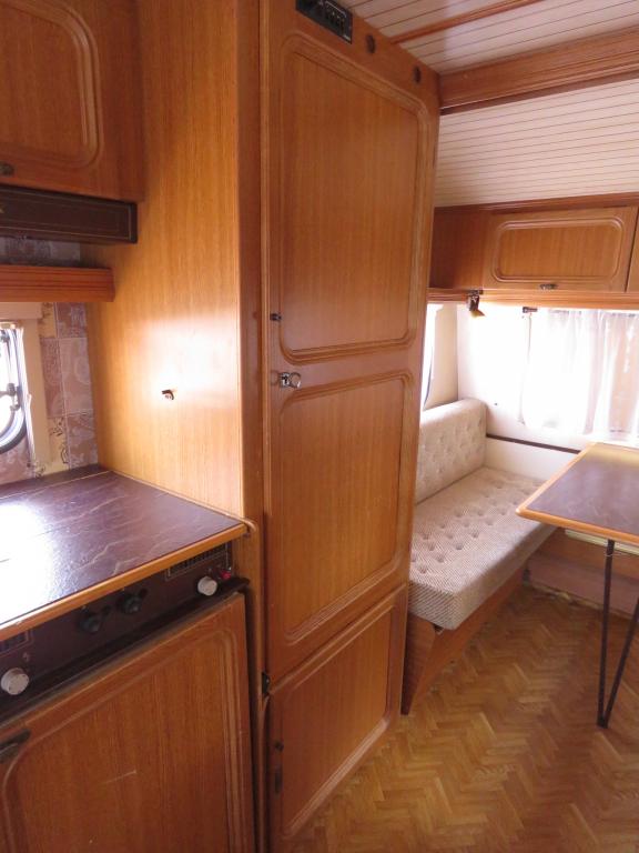 Varusteina mm: Primus- nestekeskuslämmitys sähköpatruunalla, Jääkaappi, PortaPotti- WC,..