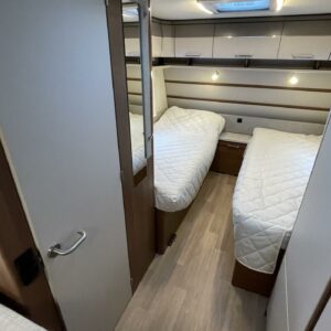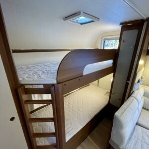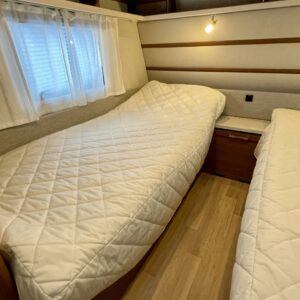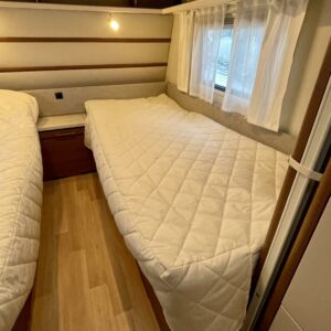 Vaunun takaosassa on kerrossänky kahdelle. Edessä erillissängyt, jotka on mahdollista yhdistää lisäpatjoilla erittäin tilavaksi parisängyksi. Keskellä vaunua sijaitseva valoisa U-ryhmä tarjoaa mukavat puitteet ruokailuun ja yhdessäoloon.