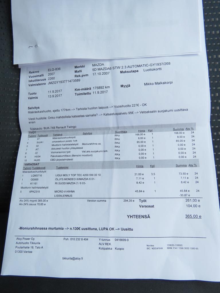 Mazda 6 2.3 (166 hv). Automaatti