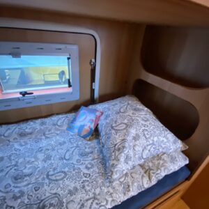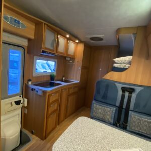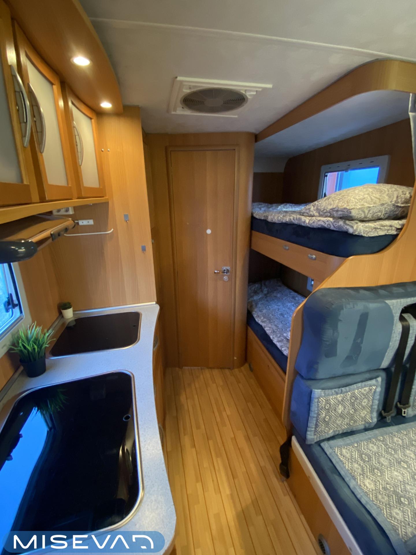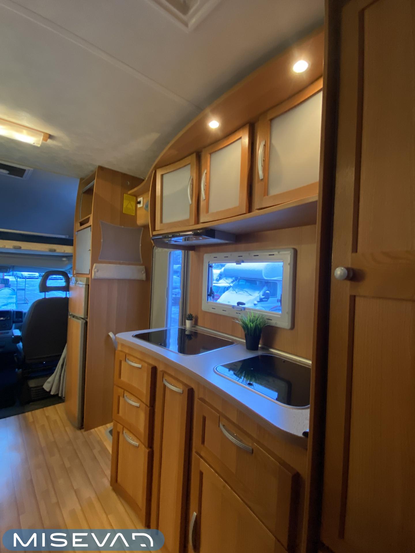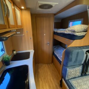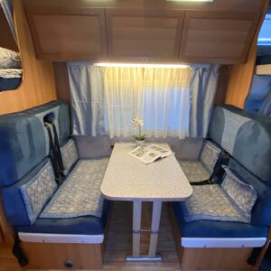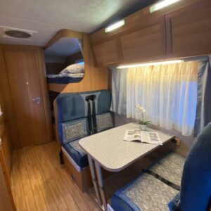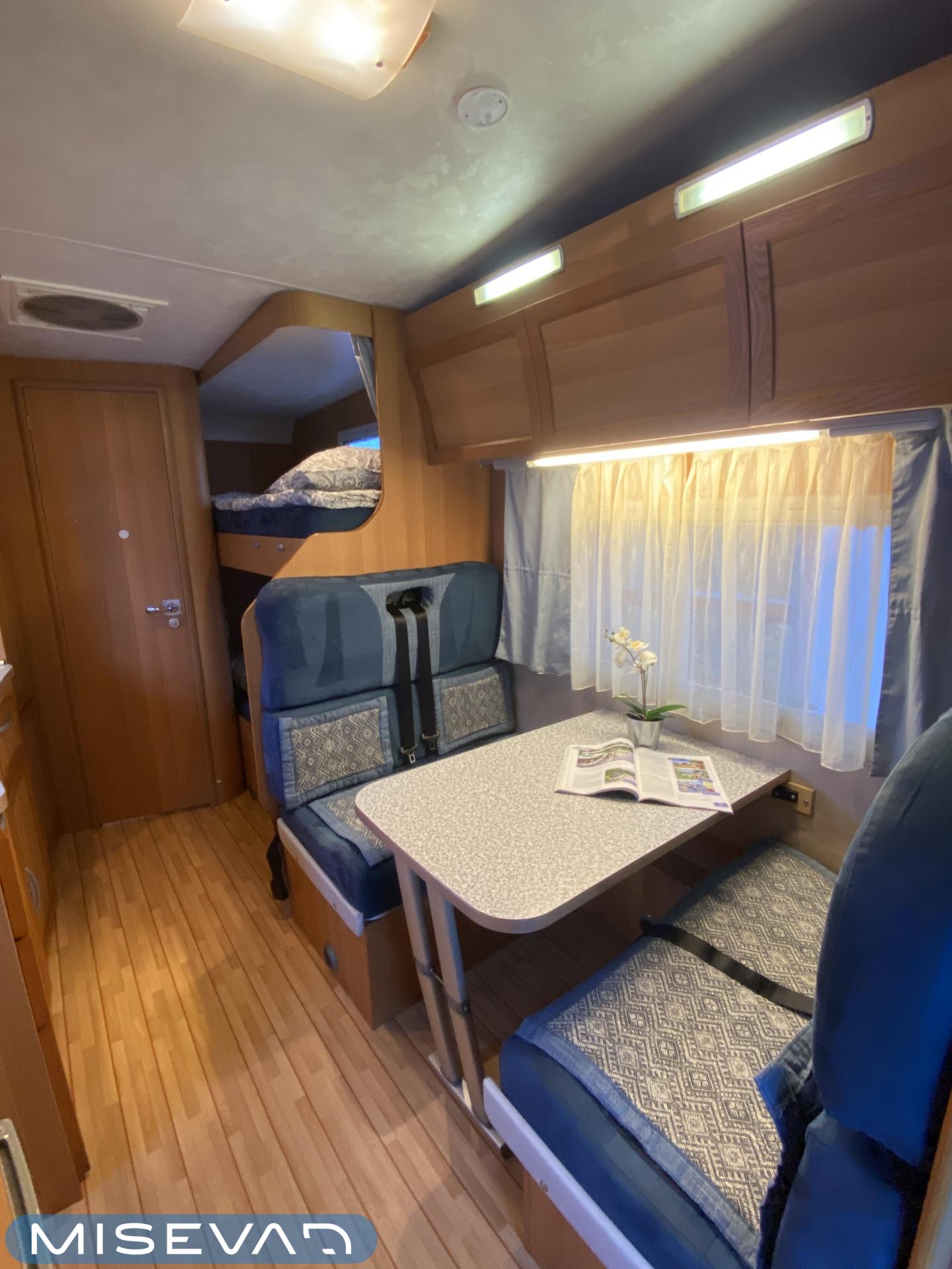 Asiallisen oloinen alkovimallinen matkailuauto mikä tarjoaa matkustuspaikat kuudelle, sekä petipaikat kuudelle. Auton takaosasta löytyy WC/kylpyhuonetilat ja suihkulle on oma erillinen tilansa. Toiselle sivulle on sijoitettu pitkittäissuuntaiset kerrosvuoteet. Alempi vuode voidaan nostaa ylös jolloin käytössä on kookas säilytystila. Keskeltä löytyy keittiö, sekä säilytystiloja. Toisella puolella on vastakkain istuttava pöytäryhmä mistä, saadaan sijattua vuode kahdelle henkilölle. Ohjaamon päällä on vielä alkovivuode kahdelle. Lämmityksenä toimii Webaston dieseltoiminen lämmitin mikä ottaa polttoaineen auton omasta polttoainesäiliöstä. Lämmin vesi valmistuu Tumaticin kaasutoimisella lämminvesivaraajalla. Koko komeus on ajettavissa henkilöauton ajolupaan oikeuttavalla B-kortilla.