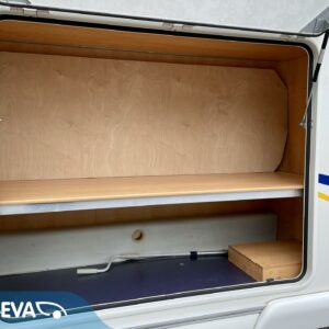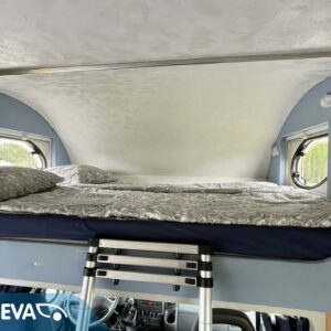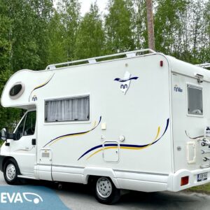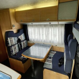 Auton etuosassa on leveä alkovivuode, johon mahtuu mukavasti 2 – 3 henkeä nukkumaan. Keskeltä autoa löytyy perinteinen pöytäryhmä, joka on sijattavissa toiseksi parivuoteeksi. Auton takaosasta löytyy kerrosvuoteiden lisäksi tilava pesuhuone/ WC.