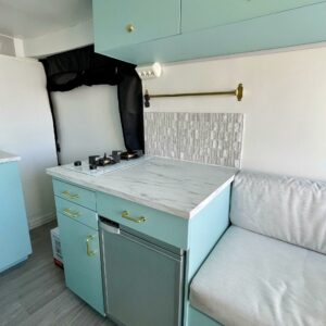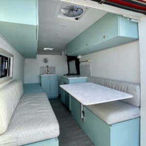Vansetin rakentama ihastuttava ja kodikas retkeilyauto hyvillä varusteilla. Auton etuosaan on sijoiteltu vesipiste ja raikkaan veden, sekä harmaan veden säiliöt ovat lämpöisissä sisätiloissa allaskaapissa. Vasemmalta edestä löytyy 60×195 mitoilla oleva penkki/vuodeyhdistelmä minkä alle jää säilytystiloja. Keskellä oikealla on keittiö kaksiliekkisellä kaasuliedellä ja kompressorijääkaapilla varustettuna. Laskutilaa tavaroille on myös oikein mukavasti. Takana on vastakkain istuttava pöytäryhmä. Tähän saadaan sijattua 140x185cm poikittaisvuode. Pöytäryhmän istuinten alle jää myös runsaasti säilytystiloja. Asunto-osa lämpenee Vevorin polttoainetoimisella (diesel) lämmittimellä. Ilmanvaihtoa on tehostettu kaksisuuntaisesti toimivalla kattopuhaltimella. Autosta löytyy maasähkön lisäksi aurinkopaneelit katolta, sekä invertteri. Ohjaamovarusteina mm. ilmastointi, vakkari, sekä multimedianäyttö mikä hoitaa myös peruutuskameran näytön virkaa. Vetokoukkukin on jos valmiiksi asennettuna ja siihen saa kytkeä 2500kg jarrullisen kärrin ja 750kg jarruttoman kärrin. Tule, näe, koe ja ihastu.