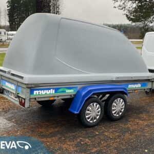 Lavan sisämitat 325 x 140. Sisäpuolella 4kpl kiinnityspisteitä per puoli ja samoin ulkopuolella. Teliakselinen ja lehtijousitettu alusta. Kippaava lava, eli helppo lastata kelkat, mönkkärit ym. ajettavat vehkeet kyytiin. Takalaita sisäpuolelta vaneroitu. Kuomu ja kaikki saranasyystemit hyvässä kunnossa. Pohjavaneri myös todella hyväkuntoinen. Nokkapyöräkin löytyy.