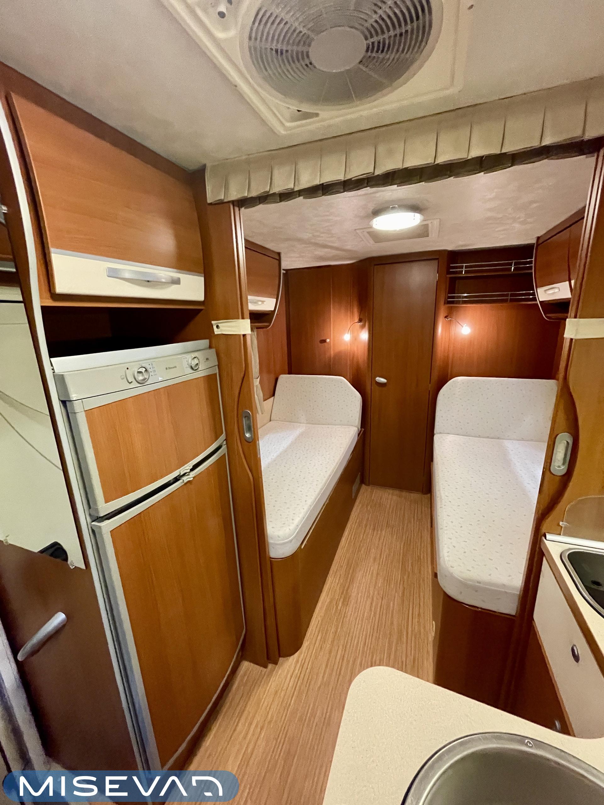 Kuin kotonaan Saksan autobaanoilla tai pitkällä siirtymällä Etelä-Suomesta kohti lappia tai Norjaa. Mukavilla patjoilla varustettu poikittainen vuode takana, erillinen suihku ja tilava wc, Keittiö jossa tilaa kokata muonat koko orkesterille, jonka jälkeen on mukava asettua miellyttävälle sohvalle, tekemään reissusuunnitelmia pöydän ääreen. Tarvittaessa lisää nukkumistilaa tuo ohjaamon yläpuolelta laskeutuva vuode. Talven kylmimpinä hetkinä laadukkaan lämmön takaa sekä Alde, lämmönvaihtimella että Truma ja kaksoispohjalla oleva auto luonnollisesti. Kesän helteiden yllättäessä miellyttävän viileyden tuo asuin-osan ilmastointilaite ja mikäli virta loppuu, on invertteri siihen oiva lääke. Takatallissa tilat ovat suunnattomat moniin harrastuksiin tai kuljetustarpeisiin. Tule ihastumaan!