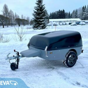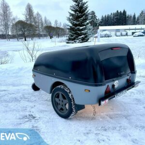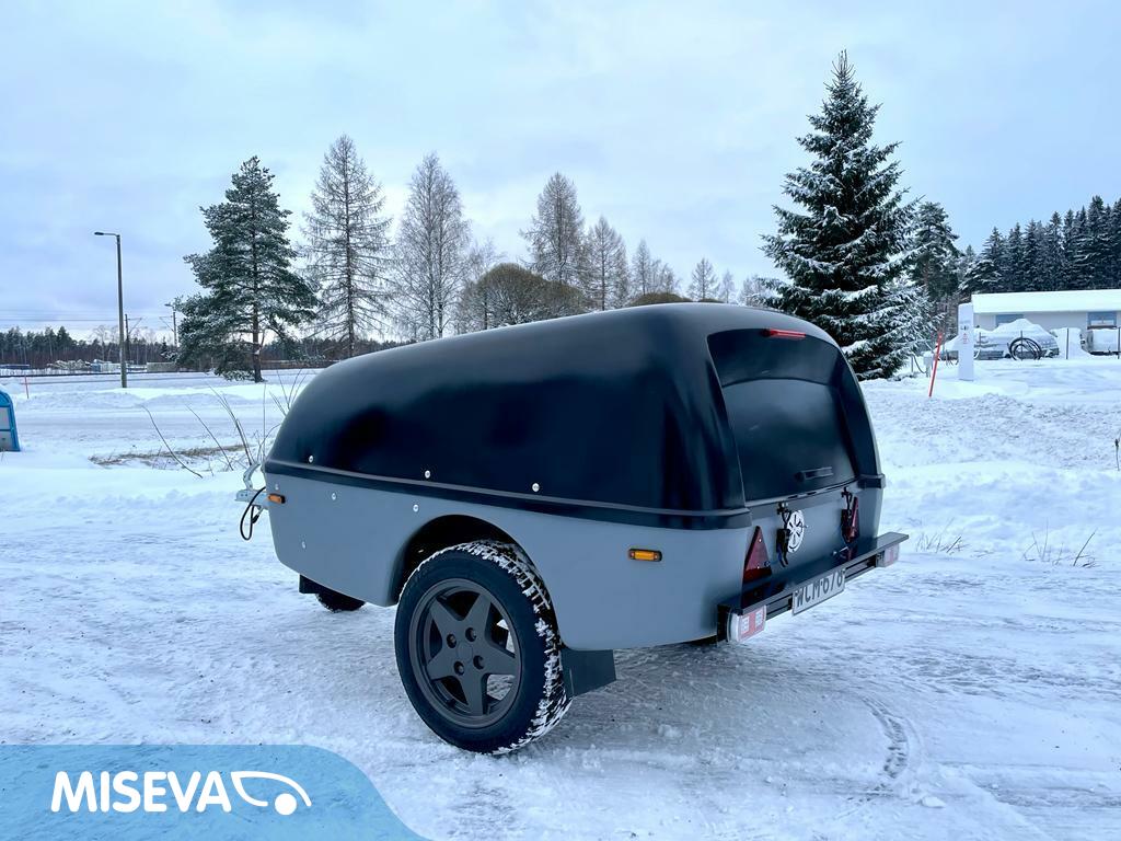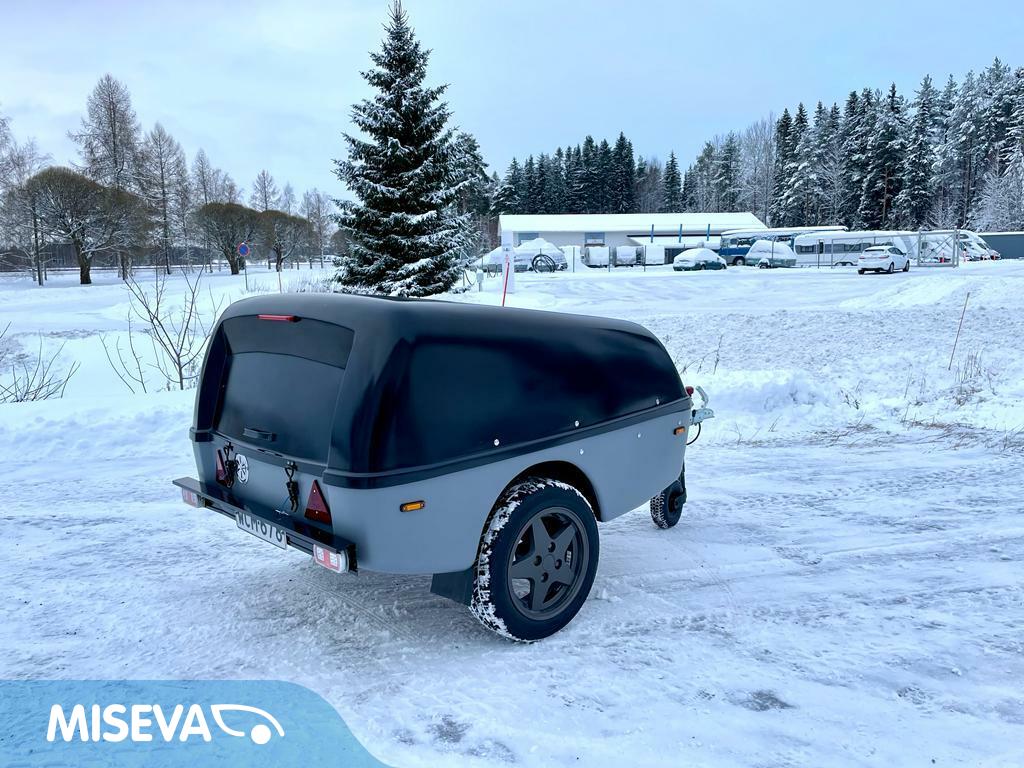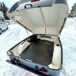 Nyt on speciaali tuote tarjolla. Näitä ei joka oksalla kasva … nopein noutaa! Tehdasvalmisteinen Made in Finland tuote. Kuomullinen todella hienon kunnon omaava kevytperävaunu millä omapainoa vain 140kg. Kokonaismassa 450kg, joten kantavuutta jopa 310kg. Sisältä löytyy akkuteline ja hieno ”virranjakokeskus” millä saadaan ohjattua sisäpuolen valaisevaa LED-valaistusta, sekä illan hämärässä mahtavan efektin luomaa alustassa olevaa LED-valaistusta. Vaunun etureunaan on tehty syvennys millä saadaan pidemmälle tavaralle (esim. sukset) kuljetusmahdollisuus. Tule, näe, koe, ihastu … ja vie mukanasi tämä sympaattinen pieni perävaunu ennen kun muut ehtivät!
