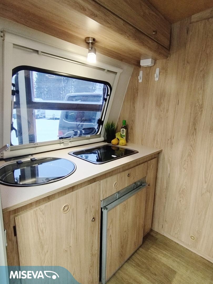 Jääkaappi, Kasetti WC, Kattoluukku, Lattialämmitys, Pakastelokero, Pyöräteline, Takakeittiö, Trumatic, Tukijalat