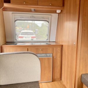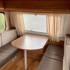 Jääkaappi,Kasetti WC,Kattoluukku,Keskuslämmitys,Lattialämmitys,Liesi,Lämminvesiboileri,Parivuode,Pesuallas,Takakeittiö,Trumatic,Tukijalat