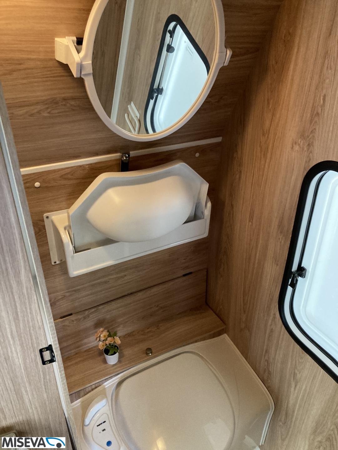 Erillisvuoteet, Etukatos, Etuteltta, Jääkaappi, Kasetti WC, Kasettiverhot, Liesi, Takakeittiö, Tukijalat, Truma, Lattialämmitys (sähkö), Polkupyöräteline