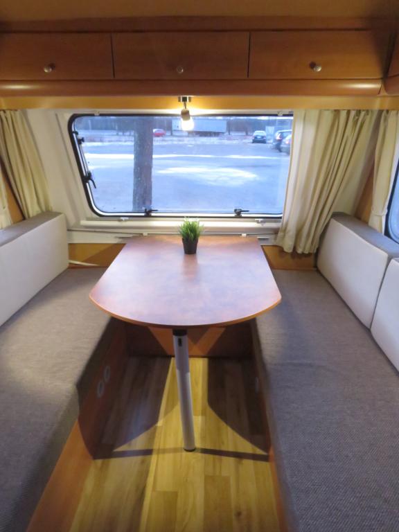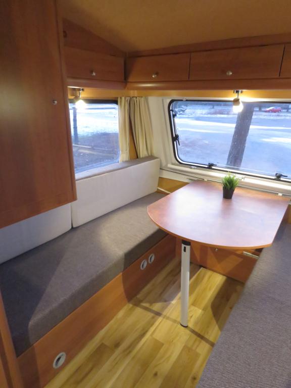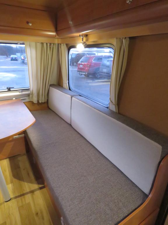 Varusteina mm: Truma- keskuslämmitys, Lattialämmitys, Puhallettava etuteltta, 2 x Renkaat,..