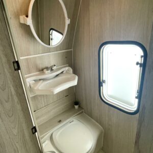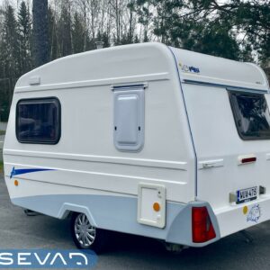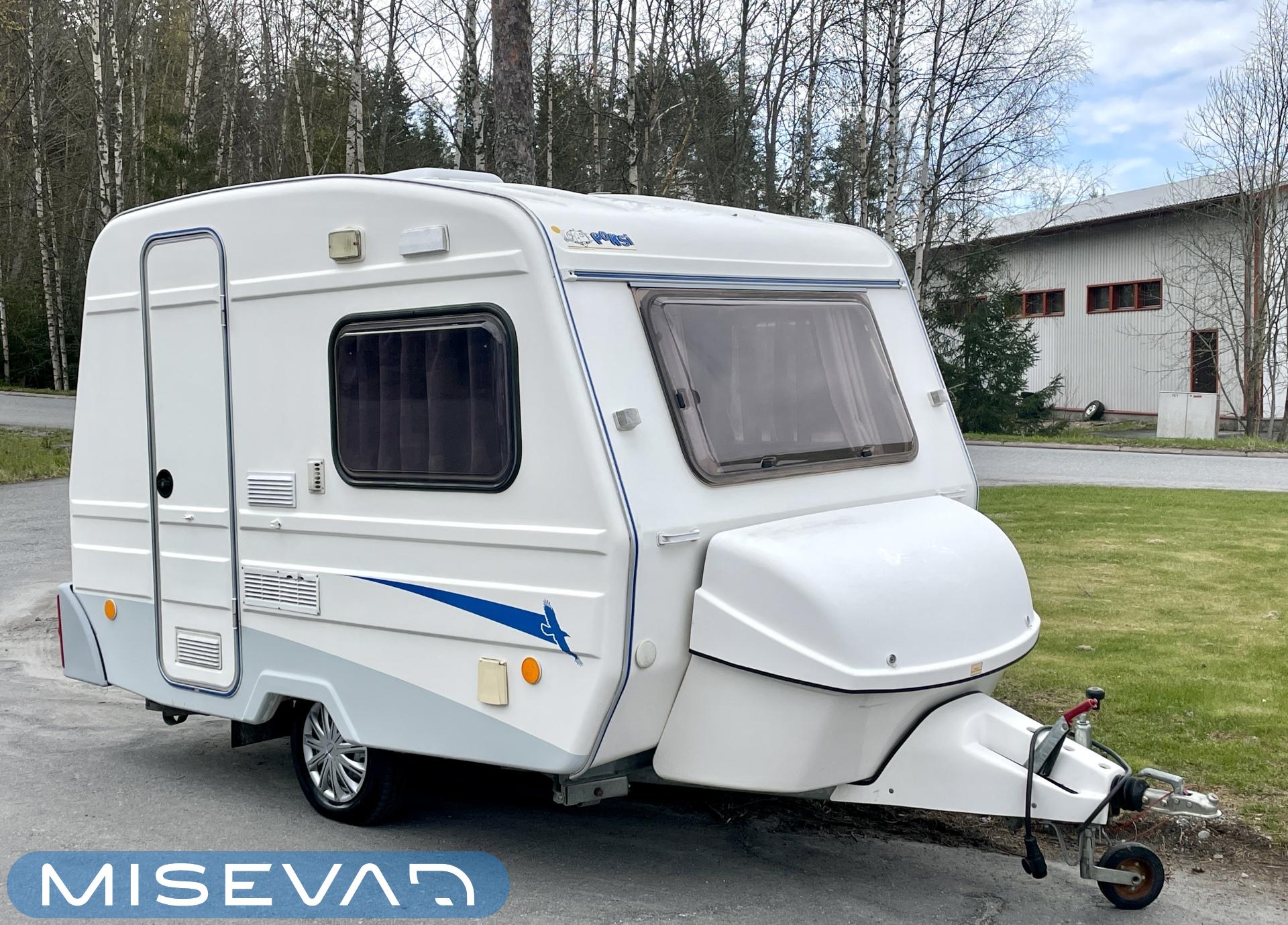 Poksi on niin pieni, että mahtuu melkein taskuun mukaan. No jos ei taskuun, niin helposti auton kuin auton perään. Tässä on erikoisuutena hieman erilainen värimaailma, mitä normaalisti Pokseissa näkee. Mukaillen enemmän uusien vaunujen tyyliä. Sisältä löytyy kaikki tarvittava, sänkyä, vessaa, liettä ja lattialämmitystä. Tämäkin Poksi odottaa vain omaa omistajaa, oletko se juuri sinä?