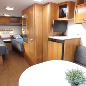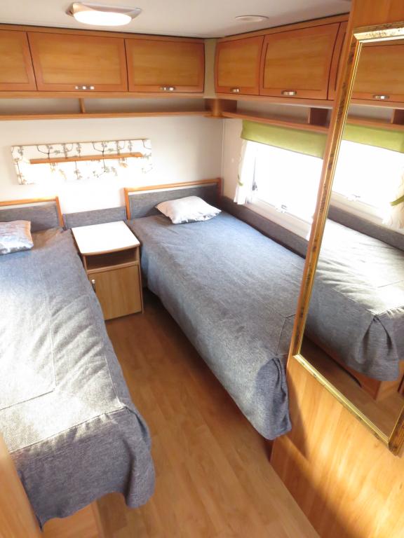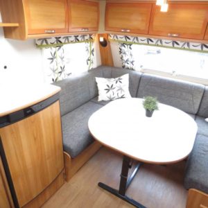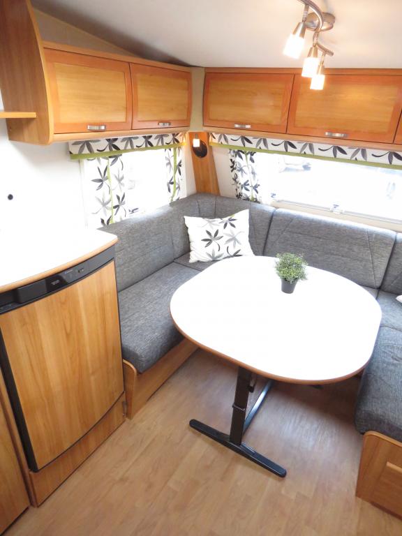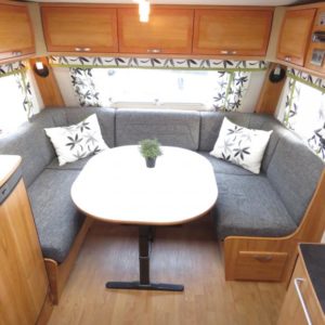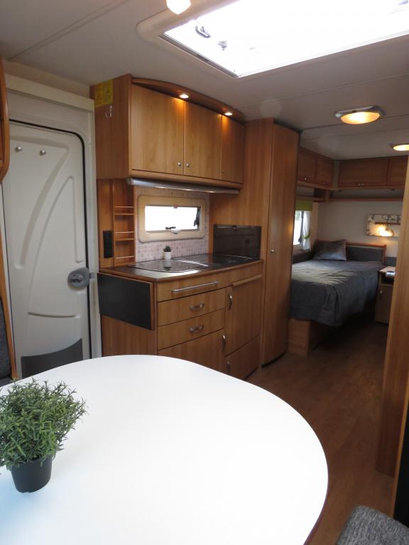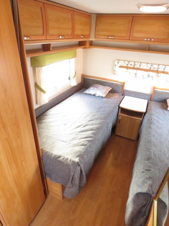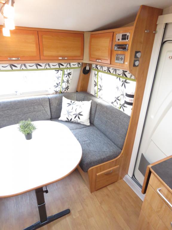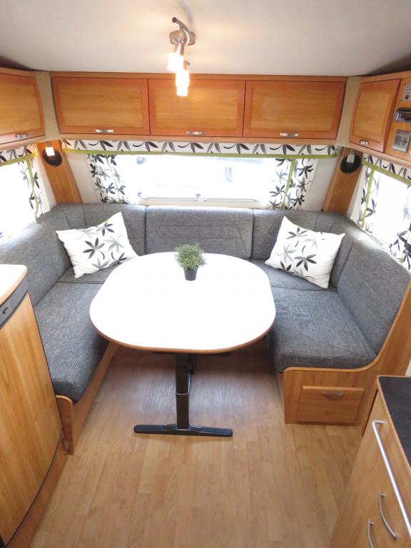 Vaunun takaosassa mukavat erillisvuoteet, edessä viihtyisä U- ryhmä.