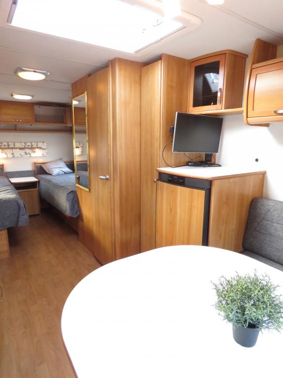 Varusteina mm: Alde- nestekeskuslämmitys sähköpatruunalla, Lattialämmitys, Markiisi, Kaasun ulosotto, TV- antenni,..