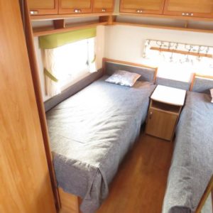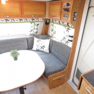 Vaunun takaosassa mukavat erillisvuoteet, edessä viihtyisä U- ryhmä.