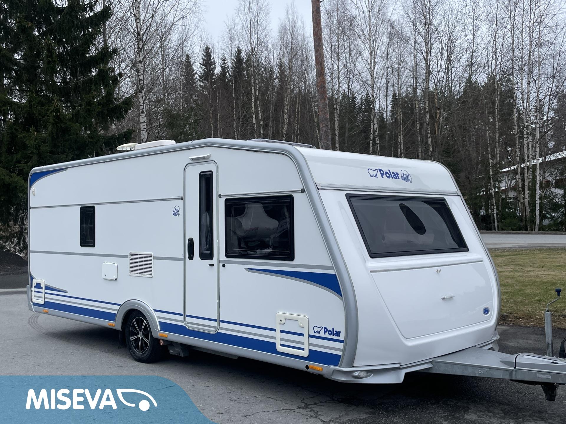 Todella ”mintin” kunnon omaava Polar, talvivaunujen klassikko! Lähes koko käyttöikä (4/15->) samalla omistajalla. Vaunun takaosa on kokonaisuudessaan WC/kylpyhuonetilaa. Sieltä löytyy lisäksi erillinen suihkutila. Kylppärin välittömässä läheisyydessä on makuuhuone missä on pitkittäinen parivuode, sekä pieni työtaso. Vuoteen alle jää runsaat säilytystilat ja sinne on käynti myös ulkopuolisen luukun kautta. Vaunun keskellä on L-keittiö, mistä löytyy iso jääkaappi, mikro, sekä kaasu-uuni. Keittiötasoilla on paljon laskutilaa. Edessä on U-sohvaryhmä mistä saadaan tarvittaessa sijattua vuode kahdelle henkilölle. Edestä löytyy vielä koko vaunun levyinen ”suksiluukku” pitkän tavaran säilytystilaksi. Mainittakoon vielä aivan käyntioven vieressä oleva vaatteiden ja kenkien säilytystila. Polarin tyyliin vaunussa on tietysti Alden lattiakiertoinen nestekeskuslämmitys. Tähän on myös yhdistetty niin sanottu ”sähköpatruuna” . Vanun koukkuun kytkeminen, sekä siirtely on vaivatonta vaununsiirtolaitteen (Mover) avulla. Hieno kokonaisuus, varmasti tutustumisen arvoinen tapaus.