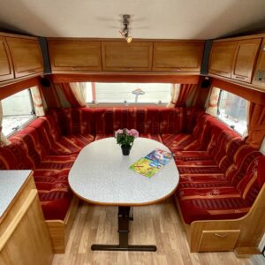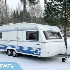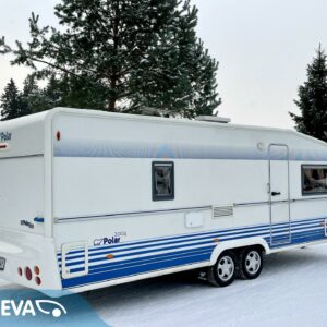 Hienolla pidolla ollut Polarin laatuvaunu pohjolan pureviin pakkasiin. Edellisellä käyttäjällä vuodesta 2010 ja on kyllä osattu pitää sitten hyvässä kunnossa. Nämähän on tunnetusti niitä ”talvivaunuja”, eli erinomainen vaihtoehto vaikka laskettelurinteen juurelle tukikohdaksi. Alden tehokas nestekiertolämmitys pitää sisätilat tasaisesti halutussa lämpötilassa kelissä kun kelissä. Vaunu on lattia-alaltaan todella avara ja etenkin keittössä on mukava työskennellä kun on paljon tilaa ympärillä. Keittiöstä löytyy iso jääkaappi erillisellä pakastinlokerolla, sekä kokkaajan unelmavaruste, eli kaasu-uuni. Vaunun takaosaan on sijoitettu pitkittäinen parivuode, sekä WC/kylpyhuonetilat. Lisäksi löytyy pieni erillinen ”työtaso”. Keskivaiheilla on keittiö, sekä säilytystiloja. Etuosaa hallitsee iso U-ryhmä mistä saadaan sijattua tarvittaessa vuode kahdelle henkilölle. Todella mukava ja käytännöllinen lisä on heti sisäänkäynnin viereen sijoitettu syvennys ulkovaatteille ja kengille. Hieno paketti juuri katsastettuna ja uusilla kitkarenkailla varustettuna.