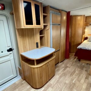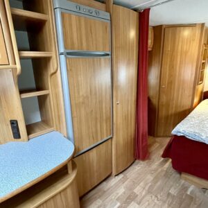 Alde, Erikoisvanteet, Jääkaappi, Kaasu-uuni, Kasetti WC, Kasettiverhot, Kattoluukku, Liesi, Lämminvesiboileri, Mikroaaltouuni, Nestekiertolämmitys, Pakastelokero, Parivuode, Pesuallas, Suihku, Sähköpatruuna, Tukijalat, Lattialämmitys (nestekierto), kwh-mittari, sähkön ulosotto