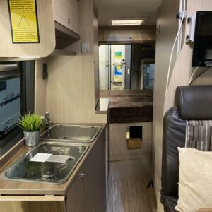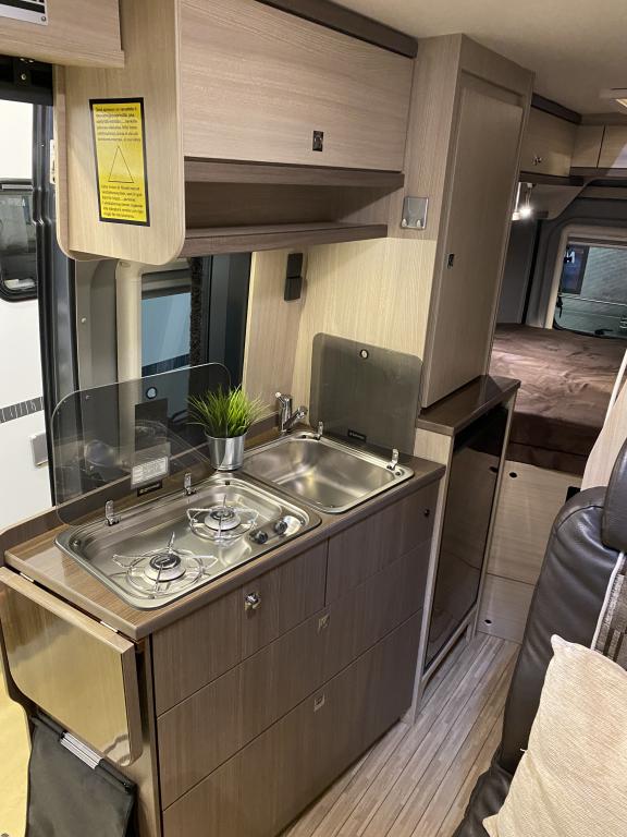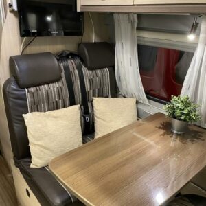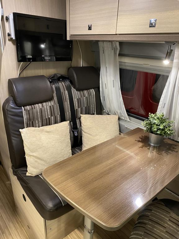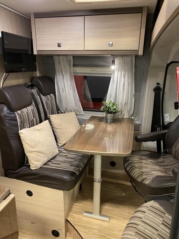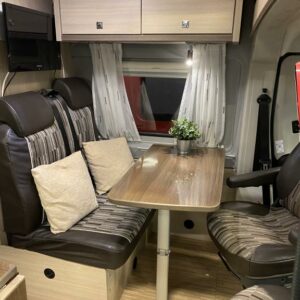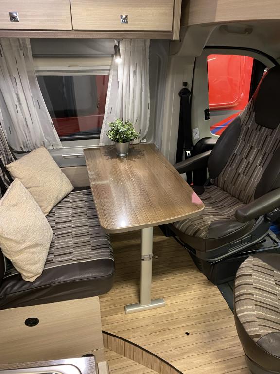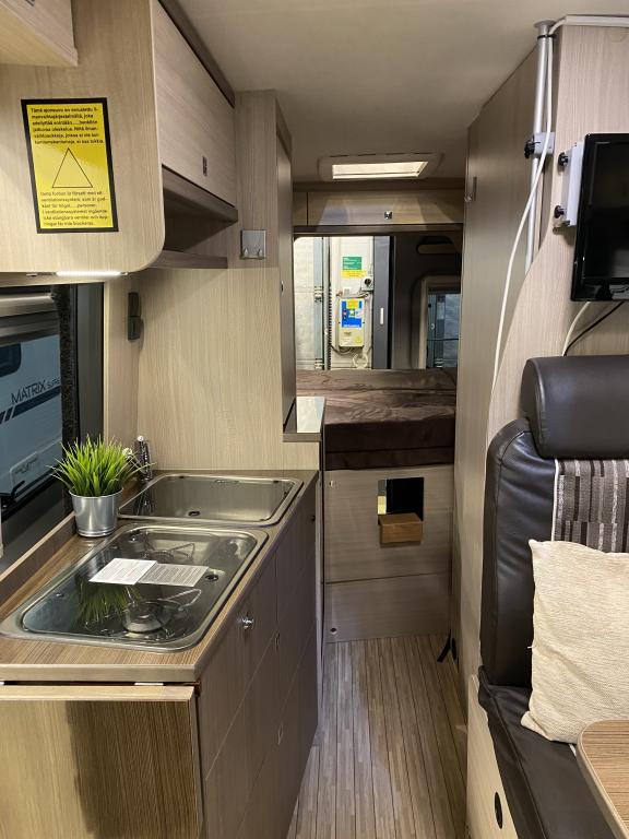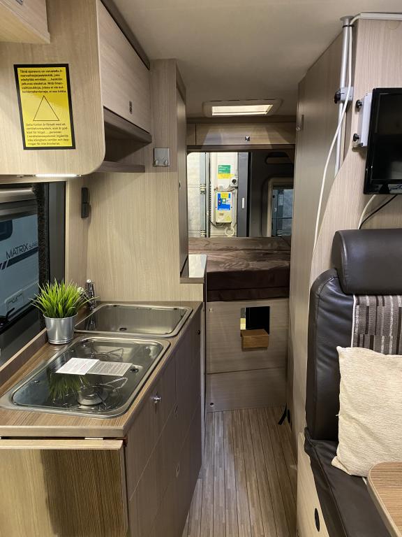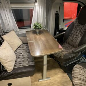 Erittäin siisti retkeilyauto ensimmäiseltä omistajalta. Edessä pöytäryhmä kääntyvin ohjaamon istuimin, keskellä keittiö ja sitä vastapäätä wc/ kylpyhuone. Takana parivuode poikittain, muunnettavissa isoksi tavaratilaksi. Vähän käytetty auto hyvällä huoltohistorialla.