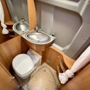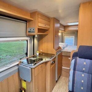 Pohjaratkaisussa edessä kääntyvät etuistuimet ja sohvaryhmä, josta pedattavissa lisävuode. Keskiosassa keittiö sekä wc & suihkutila. Takaosassa poikittainen parivuode jonka alla tavaratila.