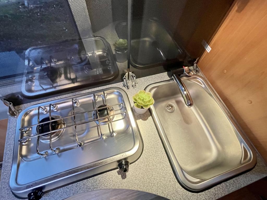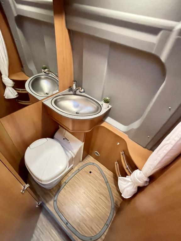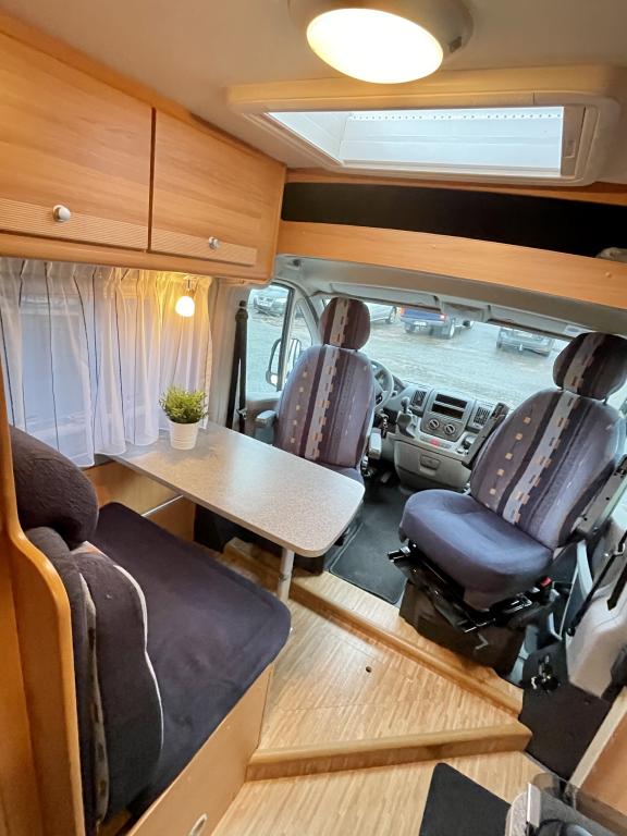 Pohjaratkaisussa edessä kääntyvät etuistuimet ja sohvaryhmä, josta pedattavissa lisävuode. Keskiosassa keittiö sekä wc & suihkutila. Takaosassa poikittainen parivuode jonka alla tavaratila.