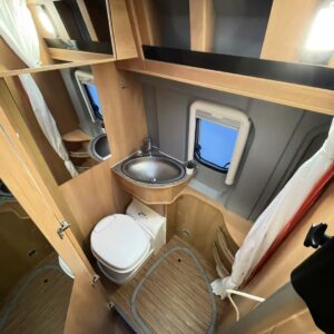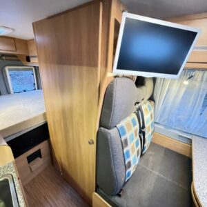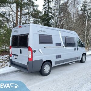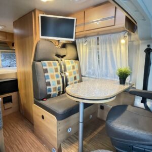 Kätevä retkiauto vaikka jokapäiväiseen ajoon. Edessä pöytäryhmä 4:lle kääntyvin ohjaamoistuimin. Leveä parivuode takana. Keskellä keittiö ja wc -tila suihkulla.