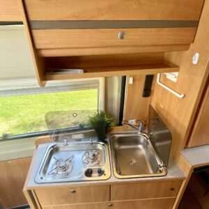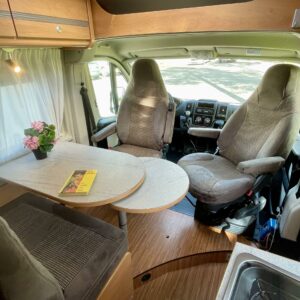 Matkailuautojen suosikkiryhmään, eli retkeilyautoihin kuuluva Pösslin 6 metrinen hieno peli valmiina kesän rientoihin. Auton takaosasta löytyy poikittainen parivuode. Vuoteen alle jää säilytystiloja ja vuoteet on nostettavissa ylös tilan laajentamista varten. Keskelle on sijoitettu keittiö, sekä WC/kylpyhuonetilat. Keittiöstä löytyy kaikki tarvittava kokkailutoimintoja ja ruoan säilytystä varten. Edessä on pöytäryhmä minne yhdistyvät kääntyvät ohjaamon penkit. Ohjaamossa mukavan matkanteon takeena automaattivaihteisto, vakionopeuden säädin, sekä ilmastointi. Ulkopuolen varusteina mm. marksiisi ja pyöräteline. Vetokoukkukin löytyy ja sille on määritetty vetomassoiksi 2500kg jarrullisena ja 750kg jarruttomana.