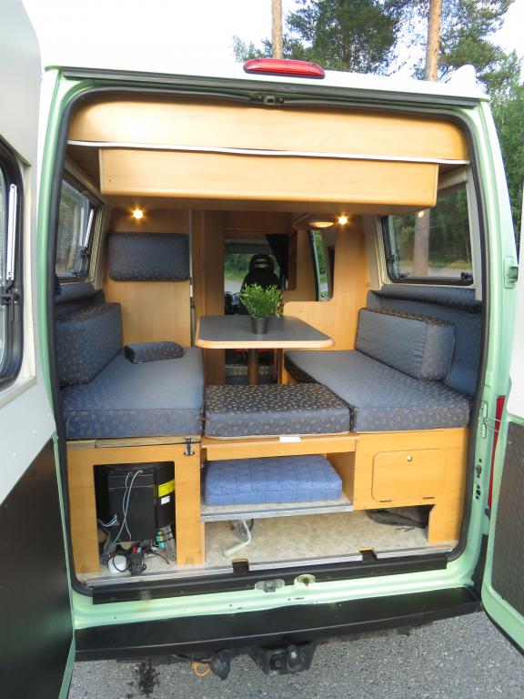 Edullinen pieni retkiauto isolla pöytäryhmällä jokapäiväiseen retkeilyyn. Pöytäryhmä sijattavissa suureksi parivuoteeksi.