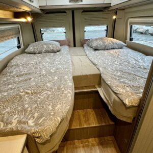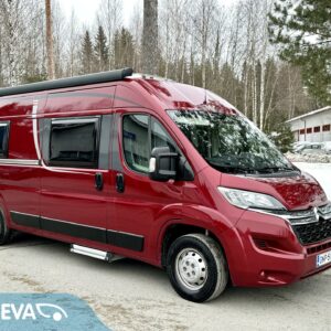 Fiksusti suunniteltu retkiauto jossa kuuden metrin kokonaispituuteen on saatu hienosti sovitettua pitkittäiset erillisvuoteet, toimiva pesuhuone/ WC ja viihtyisä ja valoisa pöytäryhmä. Kulkupuolen takeena pirteä 163 hv- moottori.