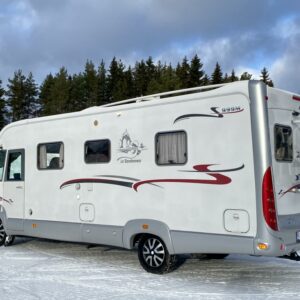 ABS-jarrut,Ilmastointi man.,Jääkaappi,Kaasu-uuni,Kasetti WC,Kasettiverhot,Kattoluukku,Keskuslukitus,Keskuslukitus kaukosäädöllä,Keskuslämmitys,Lattialämmitys,Lattiamatot asunto-osassa,Liesi,Luistonesto,Lämminvesiboileri,Markiisi,Pakastelokero,Parivuode,Parkkitutka / kamera,Pyöräteline,Stereot,Suihku,Sähkökäyttöiset ikkunat,Sähköpatruuna,Sähköpeilit,Trumatic,TV-antenni/lautasantenni,Vak.nopeudensäädin,Vetokoukku,Keskusluk. kaukosäädöllä,Luistonestojärjestelmä,Pysäköintitutka tai -kamera,Turvatyynyt,soitin