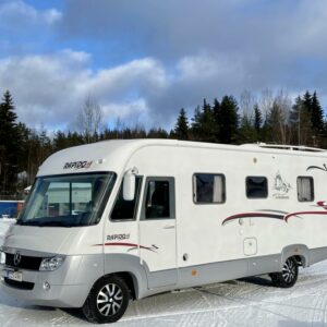 Varusteena mm; Trumatic- ilmakeskuslämmitys, Vetokoukku, Pyöräteline, Peruutuskamera,..
