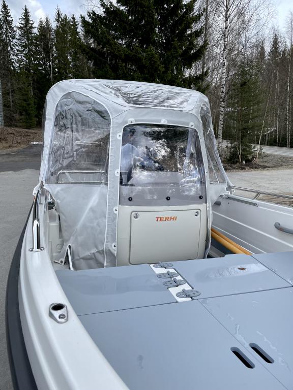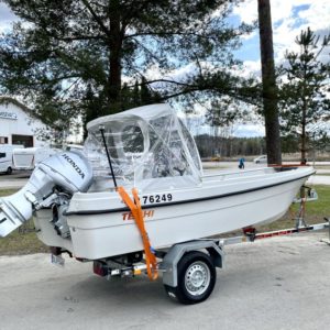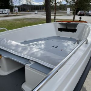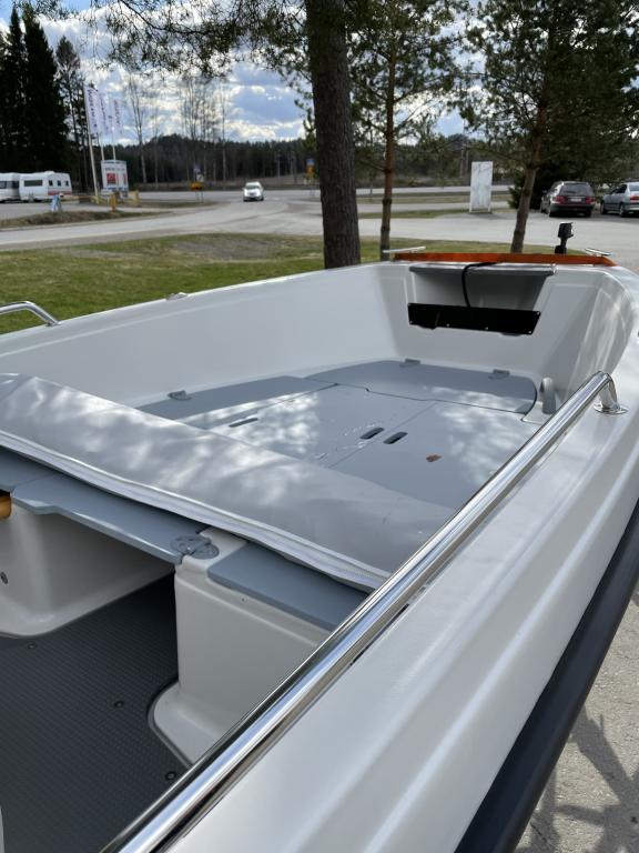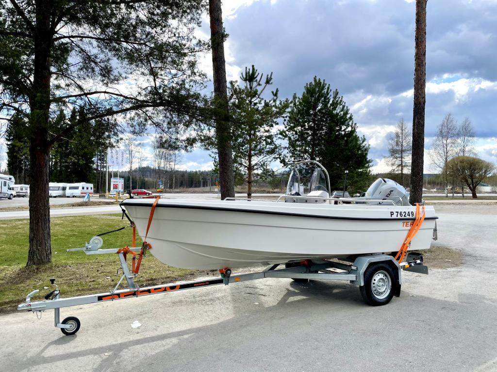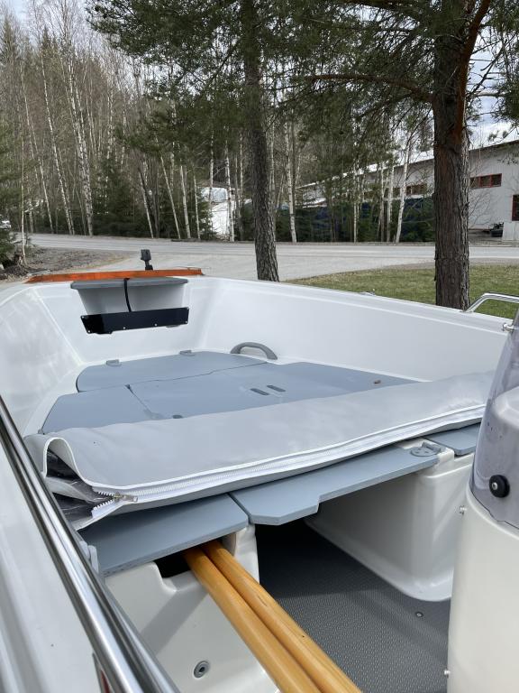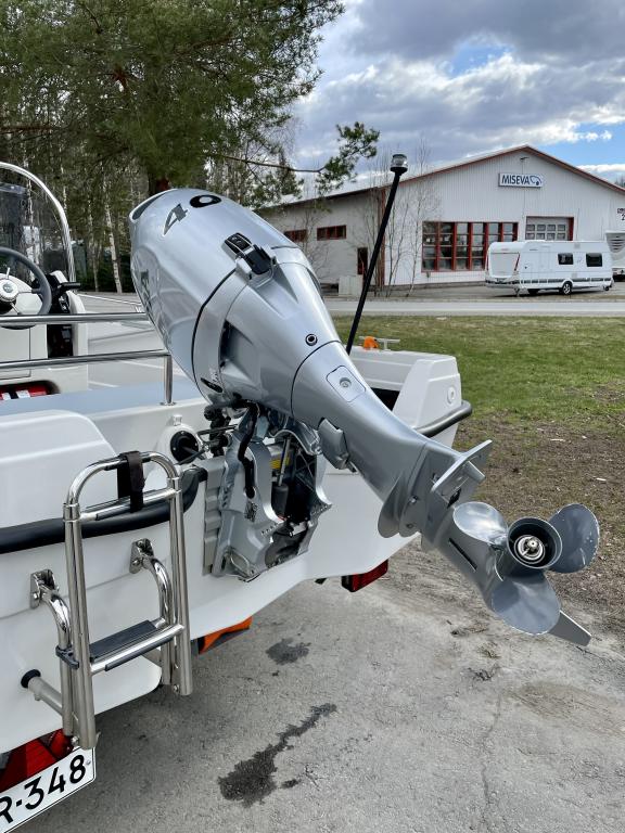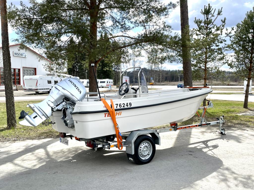 Hienokuntoinen vene-traileri-paketti. Moottorina Honda BF 40 DK2 LRTZ. Veneessä mukana kuomu ja airot. Trailerina Respo 750.