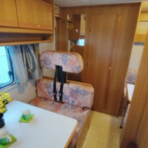 Tilavan etuvuoteen lisäksi autossa on keskiosassa keittiö ja istuinryhmä neljälle sekä takana tilava kylpyhuone sekä pieni istuinryhmä, mitä voisi käyttää esim. matkatavaroille.
