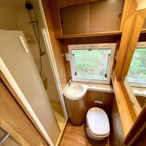 erillinen suihku. Keittiössä runsaasti laskutilaa sekä riittävän tilava pakastin/jääkaappi yhdistelmä. Säilytystiloja on reilusti ympäri asuintilaa.Takatalli on todella tilava, tilaan mahtuvat kaikki täydelliseen lomareissuun tarvittavat välineet.