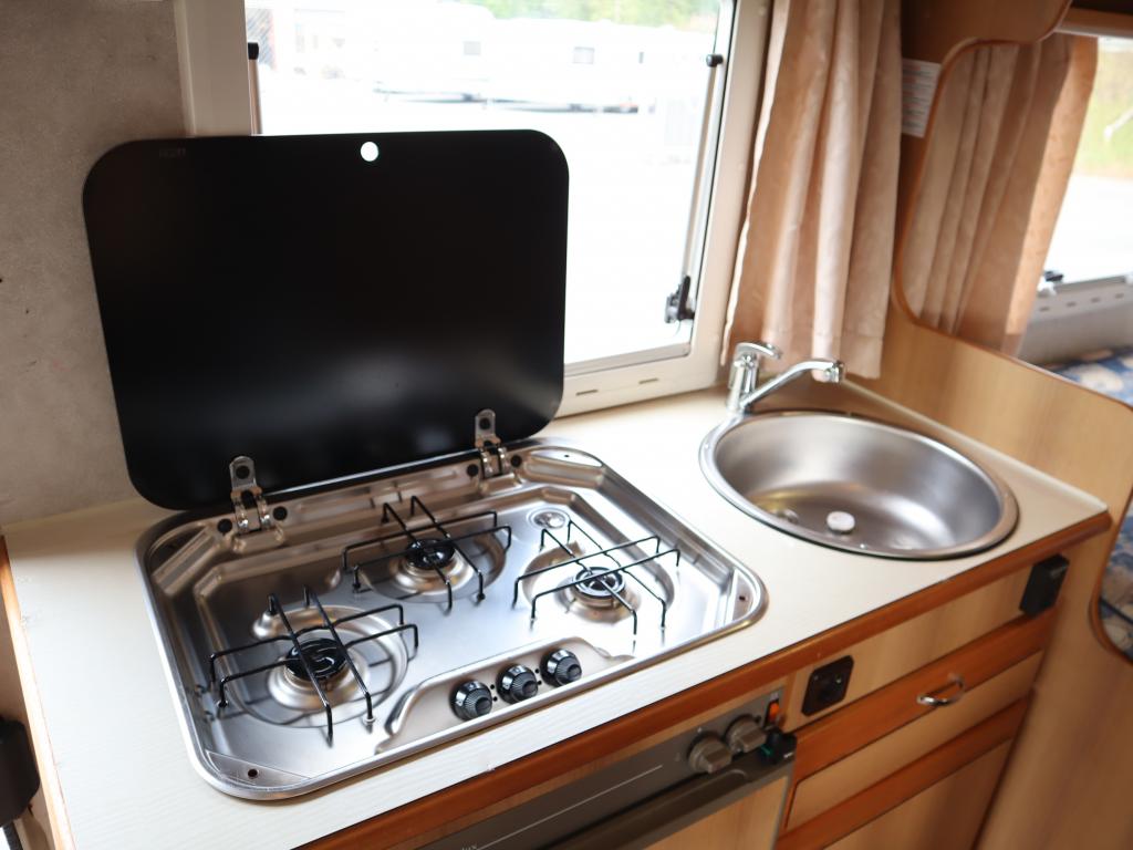 Jääkaappi,Kasetti WC,Kasettiverhot,Kattoluukku,Keskuslämmitys,Liesi,Lämminvesiboileri,Markiisi,Ohjaustehostin,Pakastelokero,Parivuode,Parkkitutka / kamera,Pesuallas,Polttoainekäyttöinen lisälämmitin,Pyöräteline,Suihku,Trumatic,Turbo,Vetokoukku