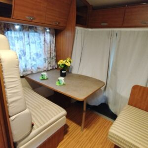 Varusteina mm.: Truma- ilmakeskuslämmitys, Ilmastointi ajotilassa, Pyöräteline, TV- antenni..