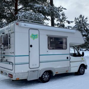 Näppärä, vain 5,5 m pitkä matka- auto joka tarjoaa istuma- ja makuupaikat viidelle henkilölle.