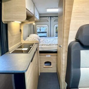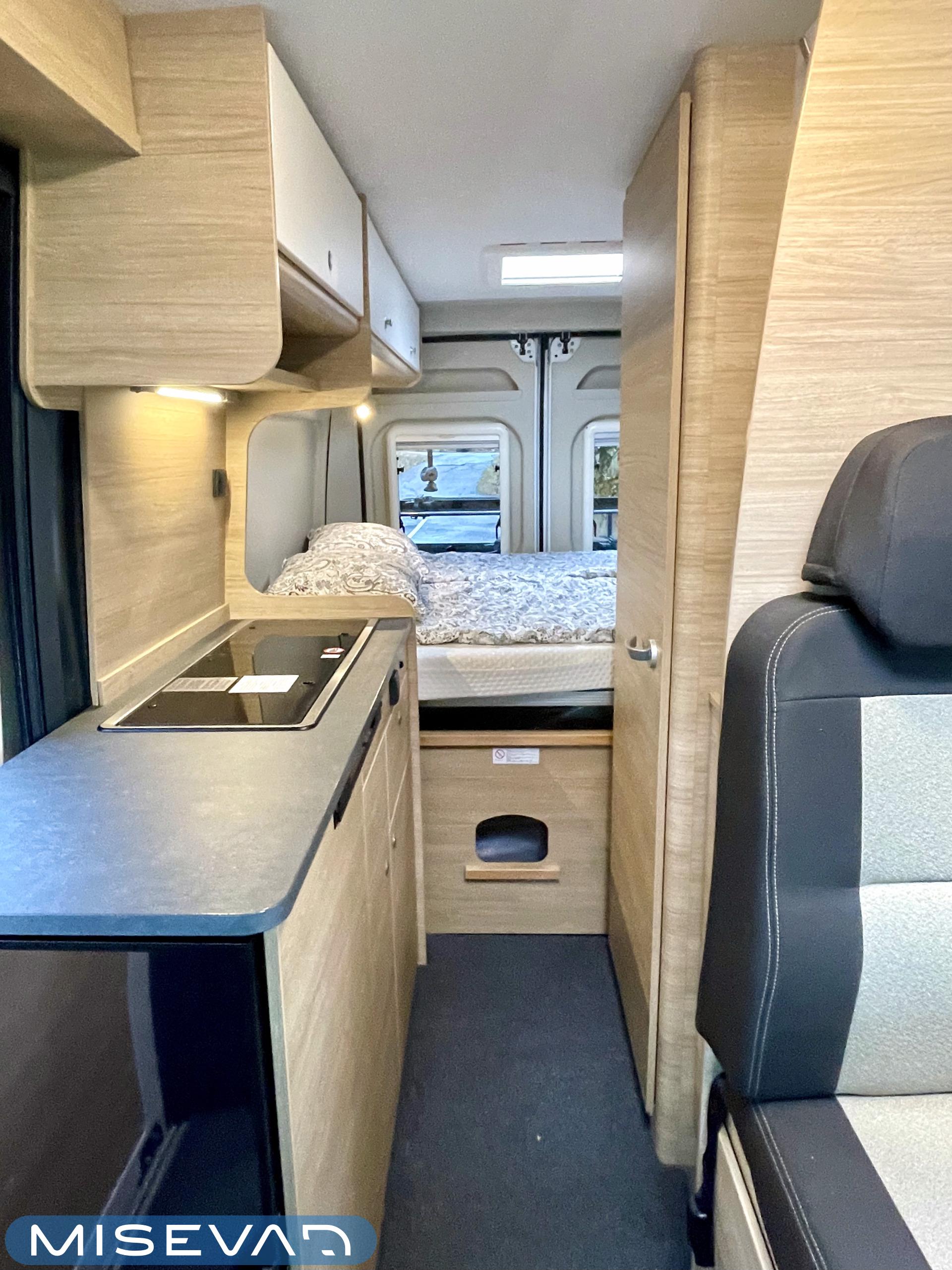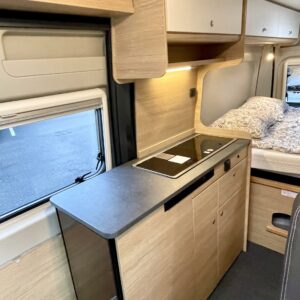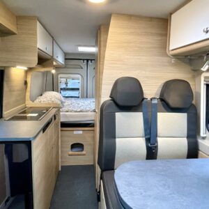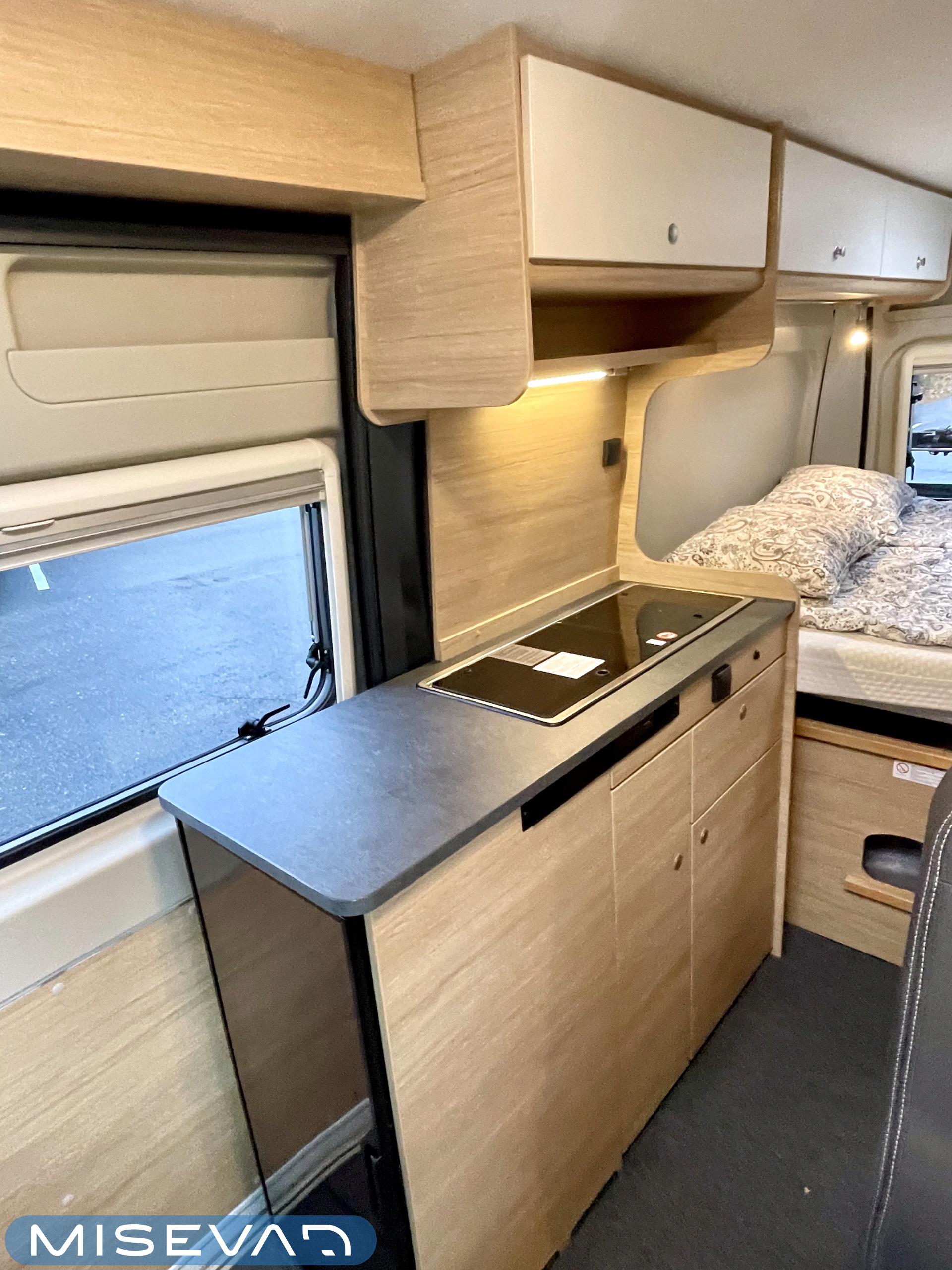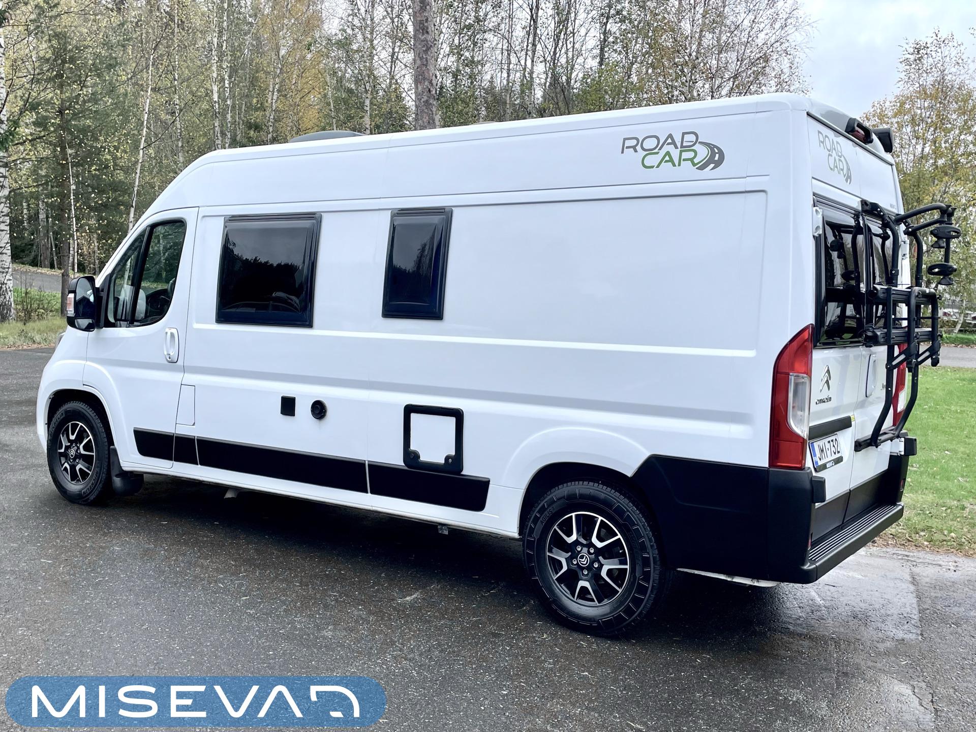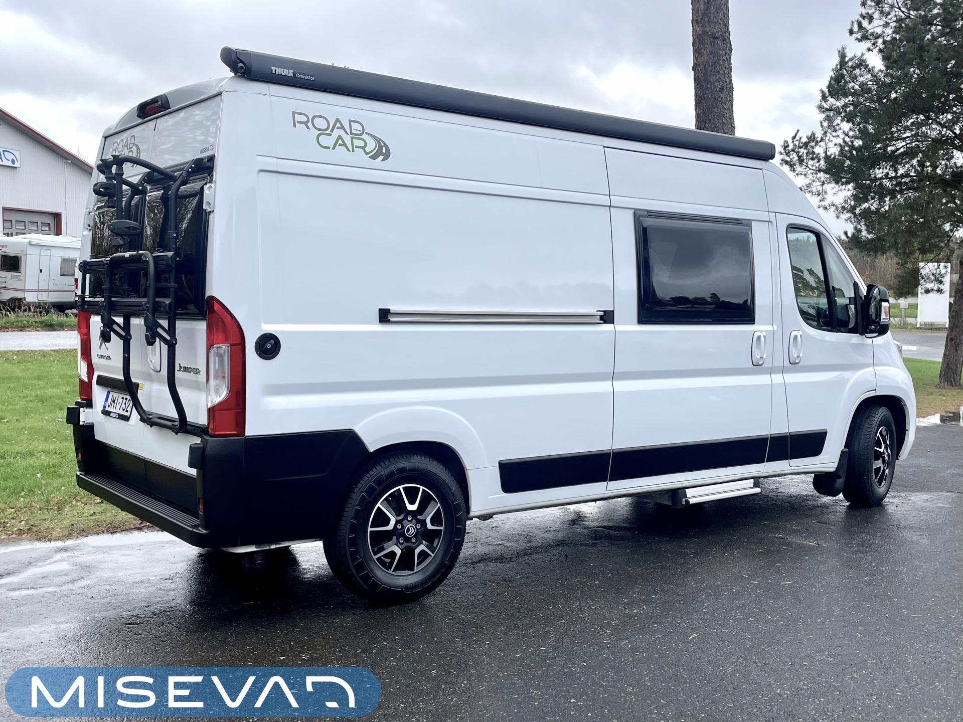 Siistillä pidolla ollut Roadcarin retkis seuraaviin seikkailuihin. Takana löytyy tuttuun tapan iso tavaratila ja parisänky. Sänky on helppo myös purkaa, jos tilaa haluaa käyttää tavaran kuljetukseen. Wc-/ Suihkutila on reilun kokoinen ja suihkuttelut onnistuu niin sisällä kuin ulkonakin. Keittiö tarjoaa retkeilyautoksi mukavasti kaappitila ja laskutila ruoanlaittoon on suorastaan iso. Jääkaapille pääsee keittiön sivustalta, joka on erityisen kätevä ominaisuus ruokavarastoja täydentäessä. Ostoskärryt saa suoraan auton viereen. Ruokailutilaa on neljälle ja pöydästä saa myös nukkumapaikan. Etupenkit on luonnollisesti kääntyvää sorttia. Säilytystilaa löytyy kätevästi myös taaimmaisen matkustajanpenkin takaa. 165 heppaa vie tämän Retkiksen varmasti vielä upeisiin seikkailuihin. Tule tutustumaan
