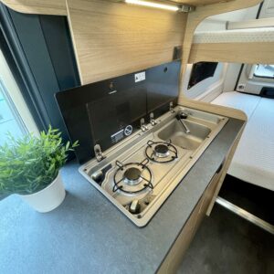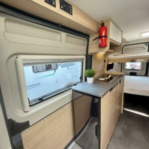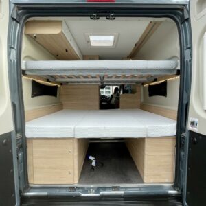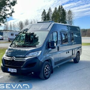 Käytännöllinen retkiauto jossa kiinteät vuoteet neljälle!