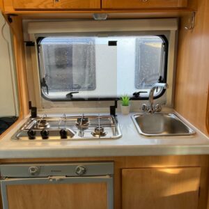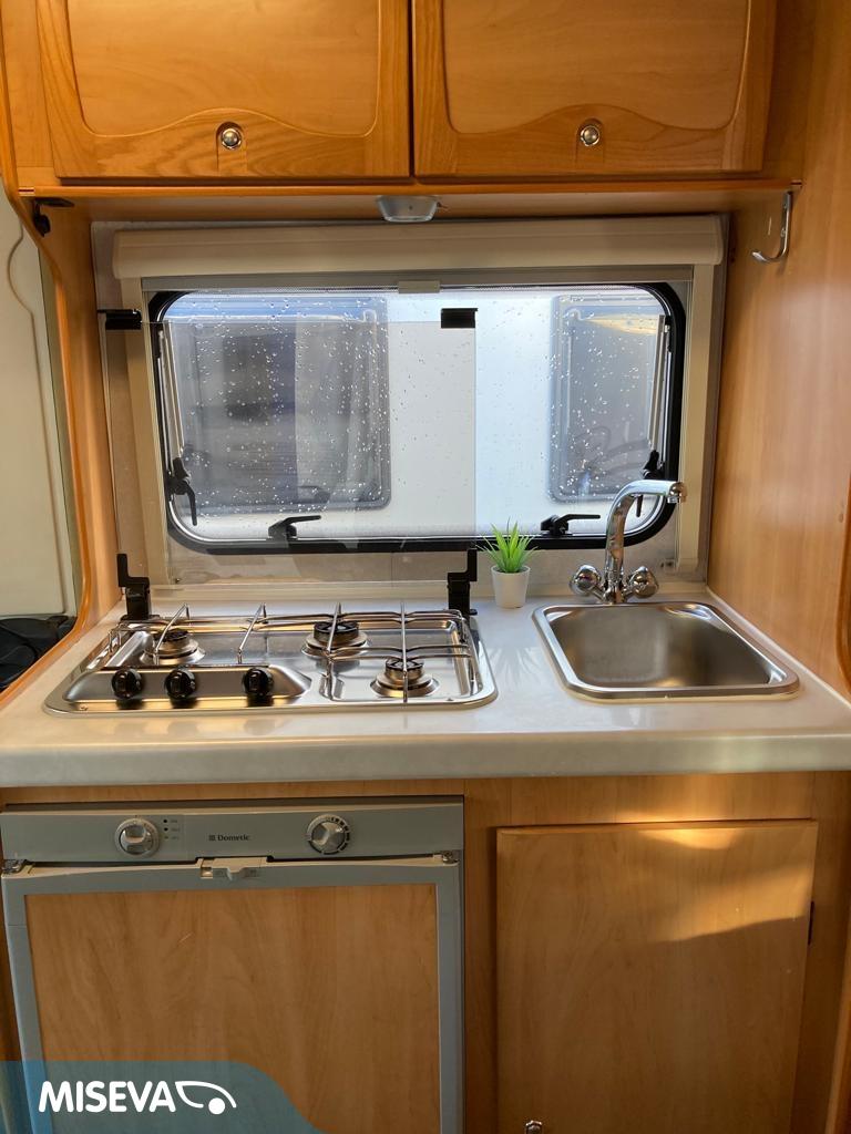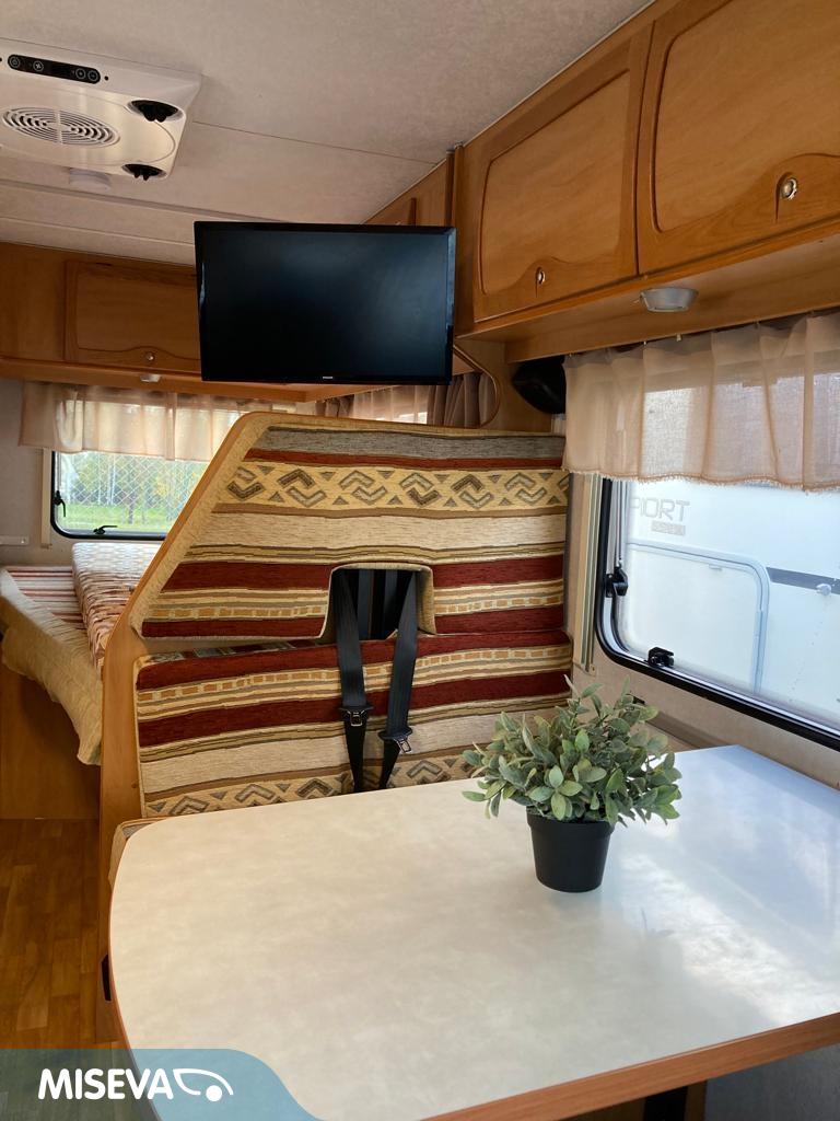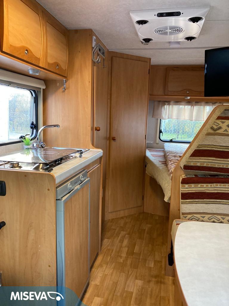 Erittäin näppärä, reilusti alle 6 m pitkä puoli- integroitu matka- auto edullisesti.