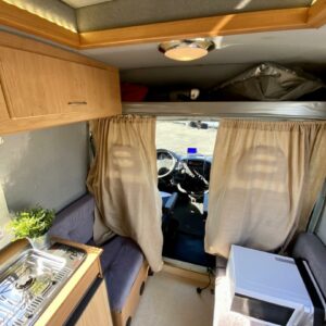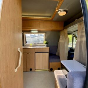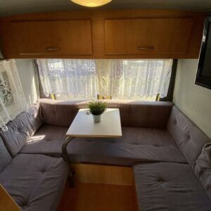 Iso U- oleskeluryhmä auton takaosassa, keittiö ja WC auton keskivaiheilla. Auton lämmityksestä vastaa diesel- käyttöinen ilmakeskuslämmitys. Moottorille löytyy lisäksi oma Webasto- lisälämmitin. Spriiliesi ja akkutoiminen jääkaappi täydentävät kaasuttoman caravan- varustelun.