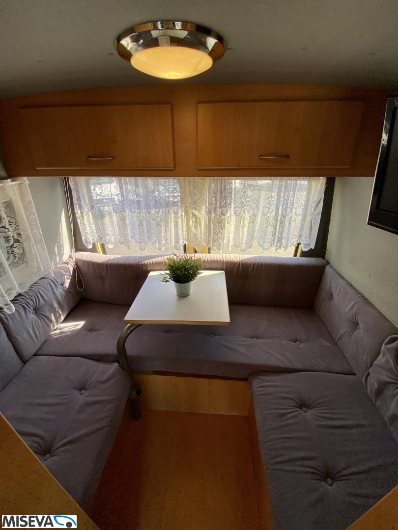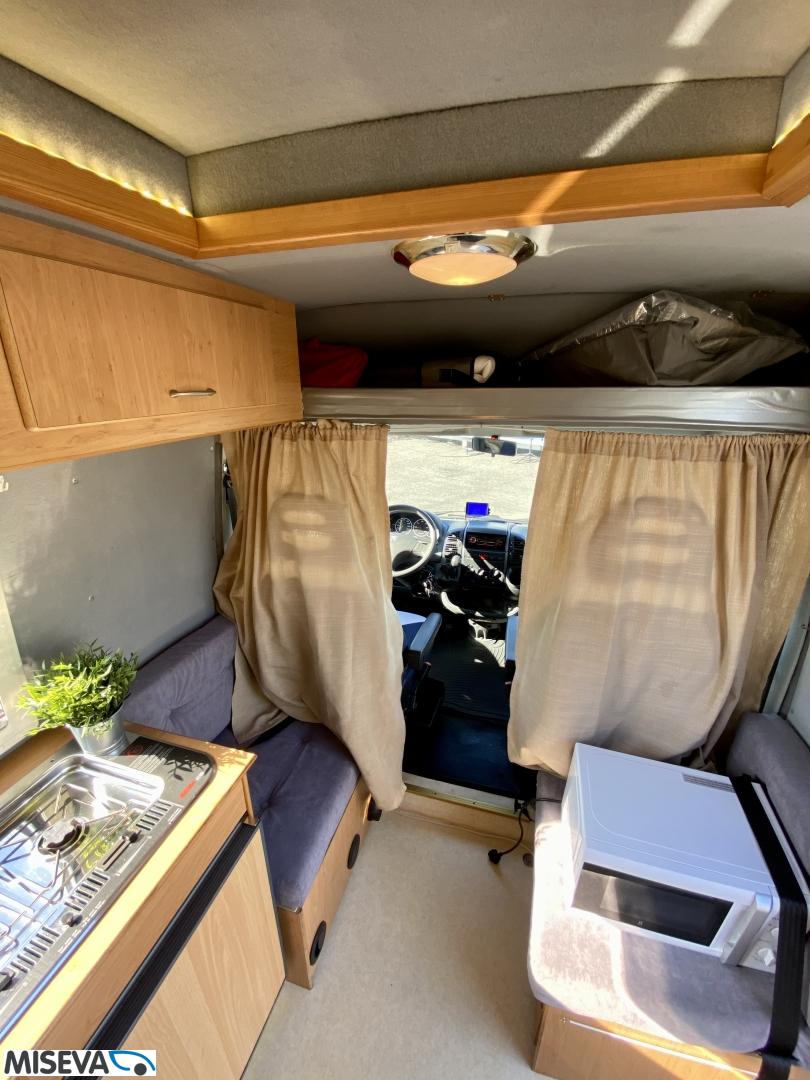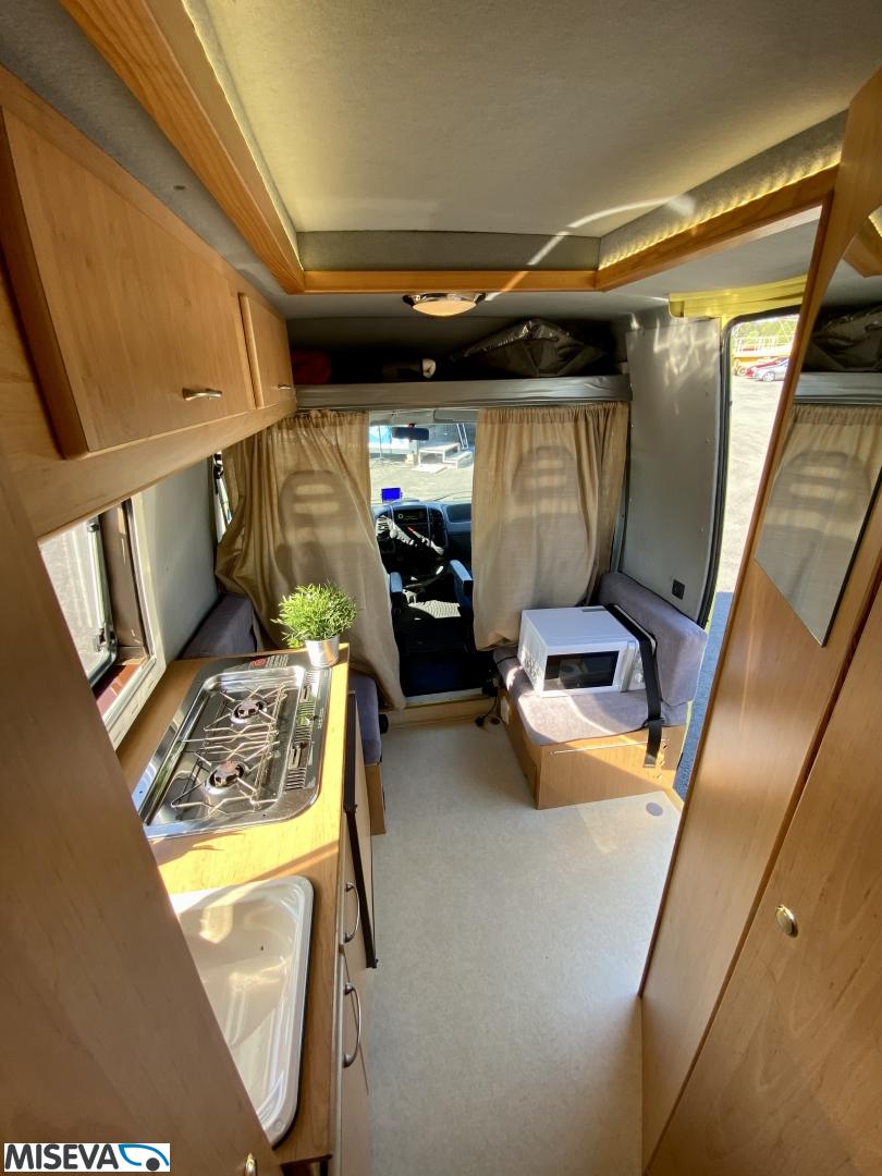 Iso U- oleskeluryhmä auton takaosassa, keittiö ja WC auton keskivaiheilla. Auton lämmityksestä vastaa diesel- käyttöinen ilmakeskuslämmitys. Moottorille löytyy lisäksi oma Webasto- lisälämmitin. Spriiliesi ja akkutoiminen jääkaappi täydentävät kaasuttoman caravan- varustelun.