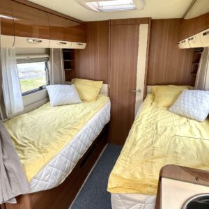 On sitten hieno! Tyylikäs LMC:n puoli-integroitu matka-auto taka-WC ja erisllisvuode pohjaratkaisulla. Auton takaosa on pyhitetty kokonaisuudessaan WC-kylpyhuonetiloille. Täältä löytyy erillinen suihkutilansa, sekä säilytystiloja tavaroille. Kylppärin välittömässä läheisyydessä on pitkittäiset erillisvuoteet. Vuoteet saadaan nostettua ylös jolloin näiden alla oleva säilytystila saadaan hyödynnettyä sisäpuolelta. Molempien vuoteiden alle on käynti myös ulkopuolisten luukkujen kautta. L-keittiössä on iso jääkaappi sijoitettuna ihanteelliselle käyttökorkeudelle. Kaapin alapuollella on tilava vetomallinen erillinen pakastinlokero. Etuosaa hallitsee pöytäryhmä minne yhdistyvät kääntyvät ohjaamon penkit, sekä sivusohva. Tässä on hyvin tilaa illan istujaisiin suuremmallekin ryhmälle. Pöytäryhmästä saadaan sijattua myös tilapäisvuode yhdelle henkilölle. Katon kaksi isoa kattoluukkua antaa luonnonvalon suorastaan tulvia sisätiloihin. Auton lämmitysjärjestelmänä on Alden tehokas ja tasaisen lämmön tuottava nestekeskuslämmitys. Luonnollisesti sähkövastukset (sähköpatruuna) ja lämminvesiboileri on integroitu samaan lämmitinyksikköön. Extrana vielä lämmönvaihdin Alden ja moottorin välillä. Sisus on tyylikäs ja moderni. Valaistusta sisätiloihin on tarjolla vähintäänkin riittävästi. Jotta matkan taittaminen olisi mahdollisimman vaivatonta ja mukavaa, niin ohjaamosta löytyy automaattivaihteisto ja vakionopeuden säädin ja tietysti ilmastointi. Viihdepuolikin on kohdallaan Zenecin multimediaviihdejärjestelmän ansiosta ja tämä hoitaa myös navin, sekä peruutuskameran virkaa. Sitten vielä pihan puolen varusteista mainittakoon markiisi, pyöräteline ja automaattinen kaasupullon vaihtaja. Tekisi mieli käyttää jopa vanhaa sanontaa ”vaihtoehto uudelle”, ei se ainakaan visuaalisen kunnon puolesta paljon pieleen mene, toki kilometrejä on hieman enemmin kun uudessa. Saa tulla ihastumaan …