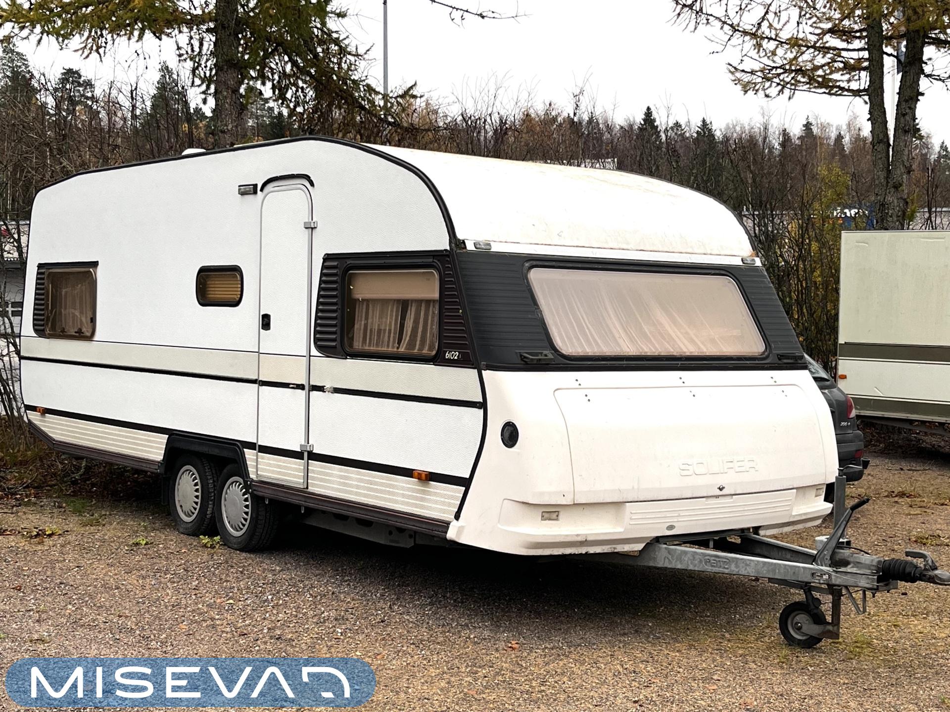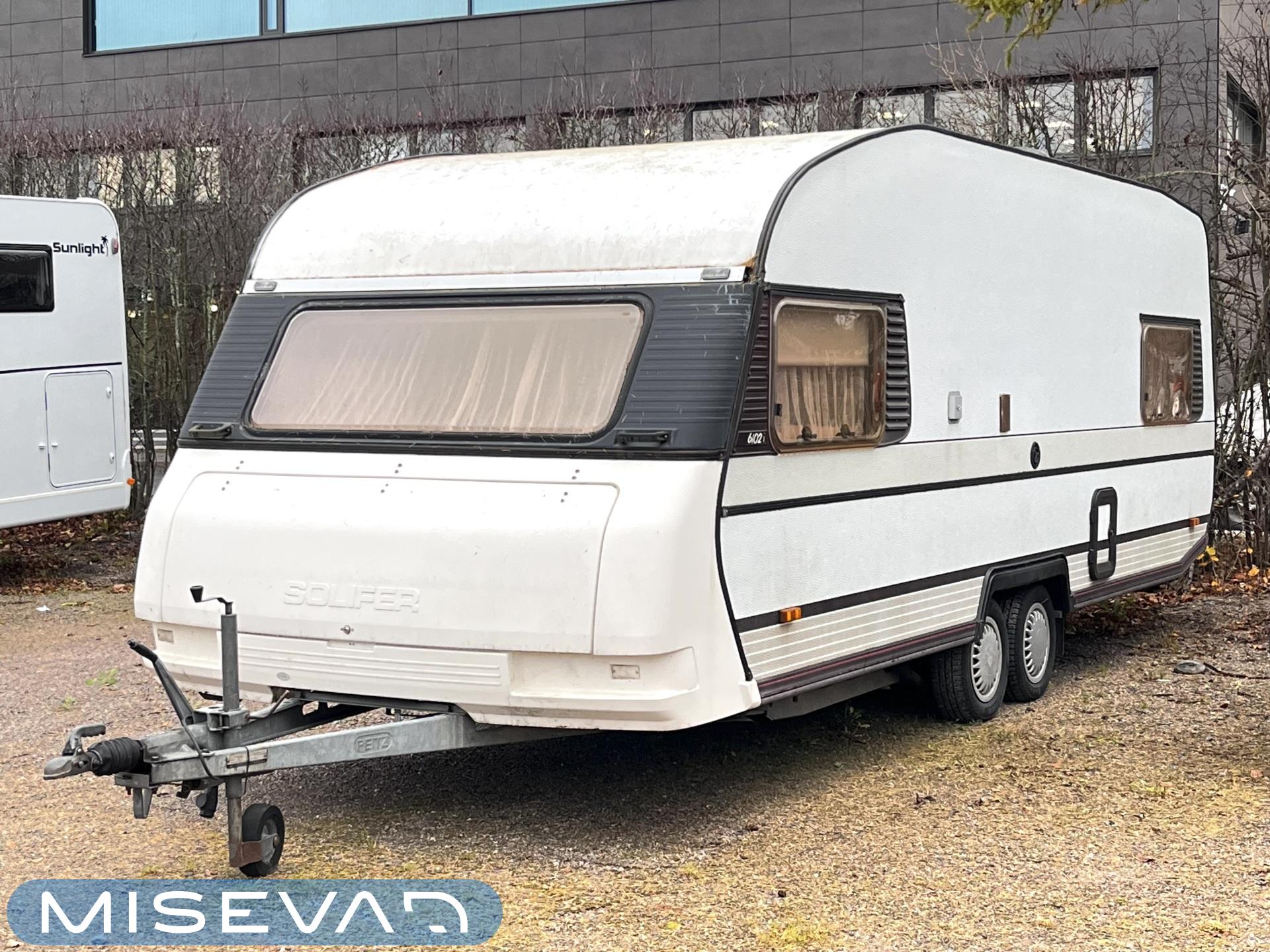 Nyt kaupan yli 20 vuotta samassa perheessä viettänyt luja ja lämmin Solifer Suomesta! Vaunua on pidetty hyvänä ja uudistettu käyttötarpeiden mukaan, mm. vikaantunut vanha jääkaappi on vaihdettu uuteen akkuvirralla toimivaan kompressorimalliseen ja sen myötä lisätty akkukapasiteettia ja aurinkopaneelikin. Tästä kahden aikuisen ihmisen ikäiseksi oikein siististä matkailuvaunusta löytyvät liki samat mukavuudet, kuin uusistakin. Omamassa rekisteriotteessa 1140 kg, kokonaismassa 1500 kg.