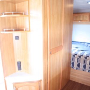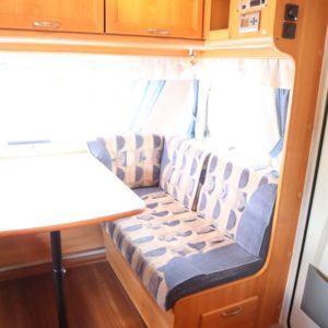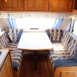Vaunun takaosassa poikittainen parivuode, edessä pöytäryhmä joka sijattavissa toiseksi parivuoteeksi.
